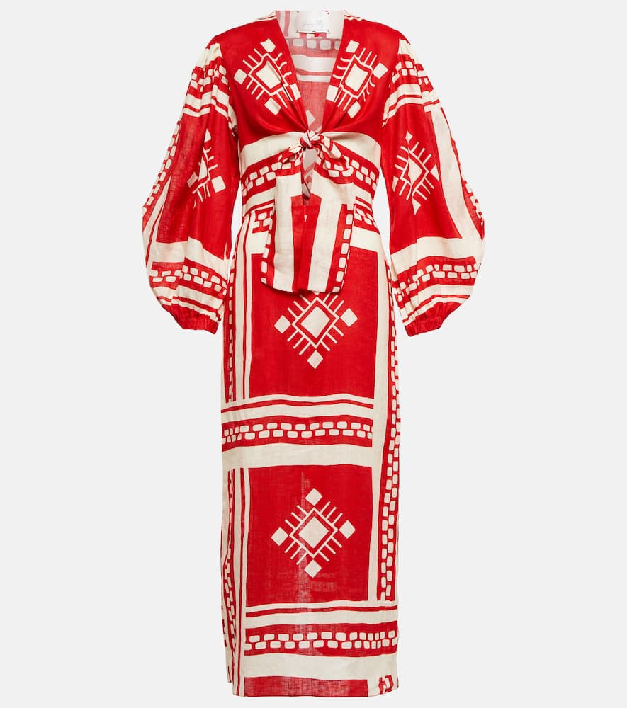 Made in Colombia. Material: 100% linen. Care instructions: dry clean. Designer color name: Cuzco Ruby Cerise/Ecru. Shop the latest Johanna Ortiz Maxi Dresses for women.