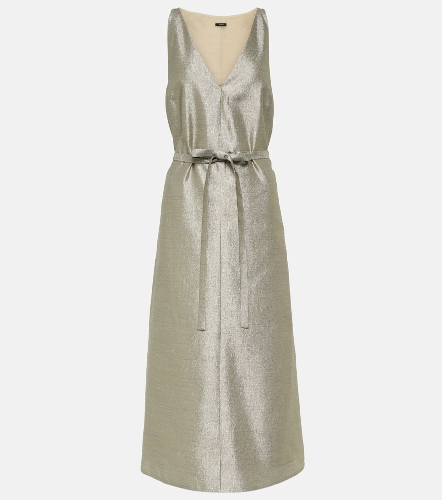 Material: 55% polyester, 29% viscose, 16% metallic fibres. Care instructions: dry clean. Made in Bulgaria. Designer color name: Metallic Spark. Lining: 100% viscose. Closure: zipped side, belted waist. Shop the latest Joseph Midi Dresses for women.