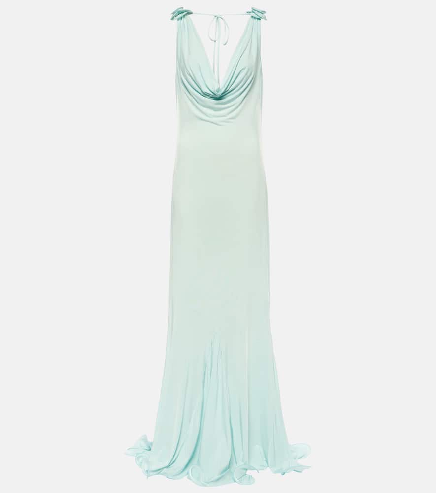 Material: 94% cupro, 6% elastane. Care instructions: dry clean. Made in Poland. Designer color name: Blue. Closure: self-ties. Shop the latest Magda Butrym Maxi Dresses for women.