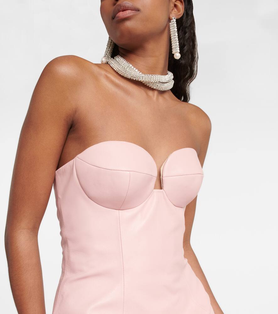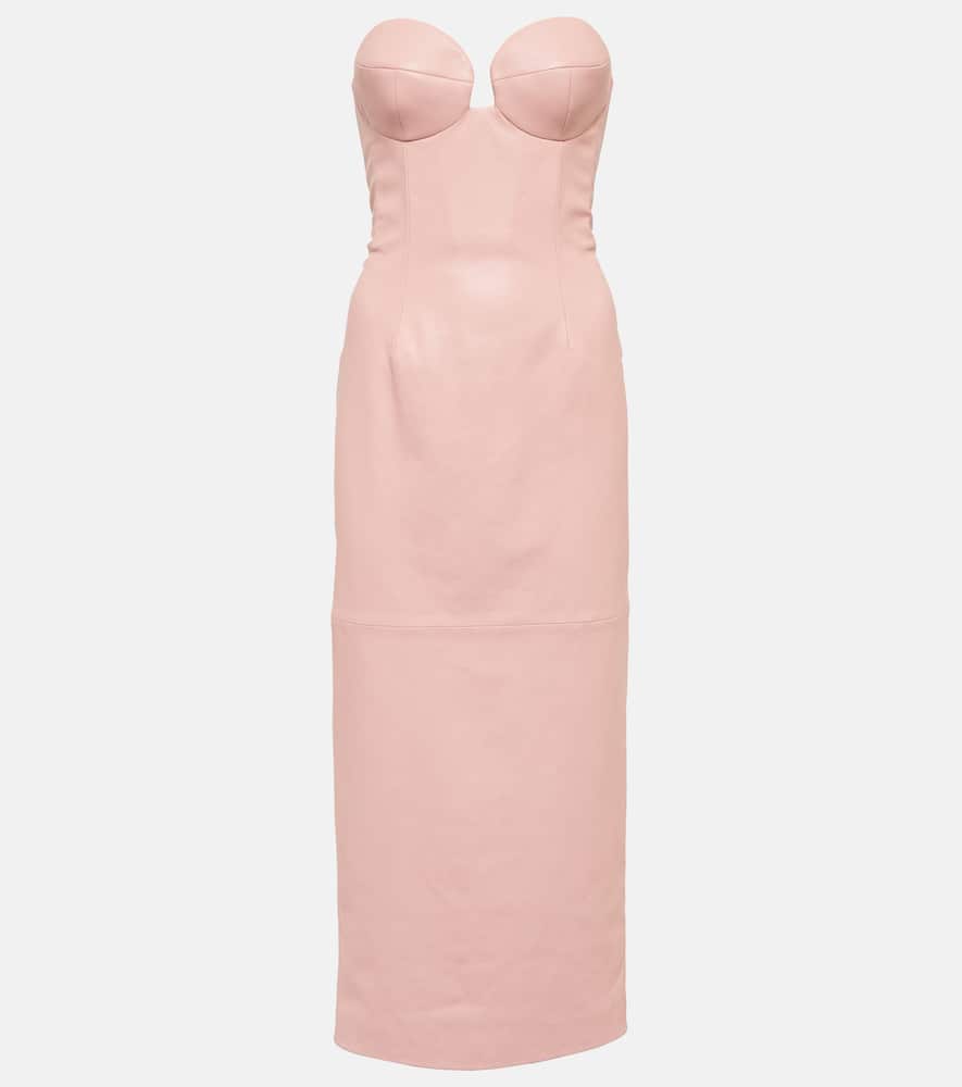 Built-in bustier, Long vent. Made in Poland. Material: 100% lamb leather. Designer color name: Pink. Closure: zipped back. Care instructions: dry clean. Lining: 100% viscose. Shop the latest Magda Butrym Midi Dresses for women.