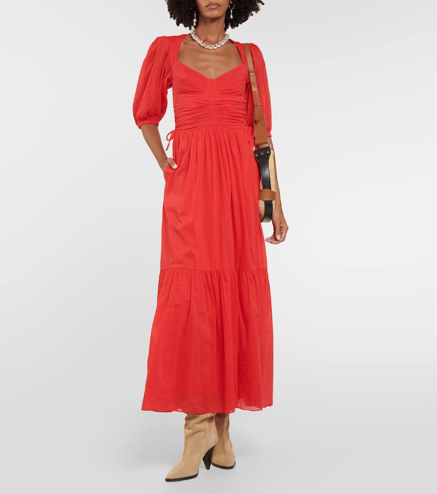 Material: 100% cotton. Care instructions: machine wash at 30 degrees. Made in India. Designer color name: Poppy Red. Lining: 100% cotton. Material II: 100% silk. Closure: invisible zipper. Shop the latest Marant Etoile Maxi Dresses for women.