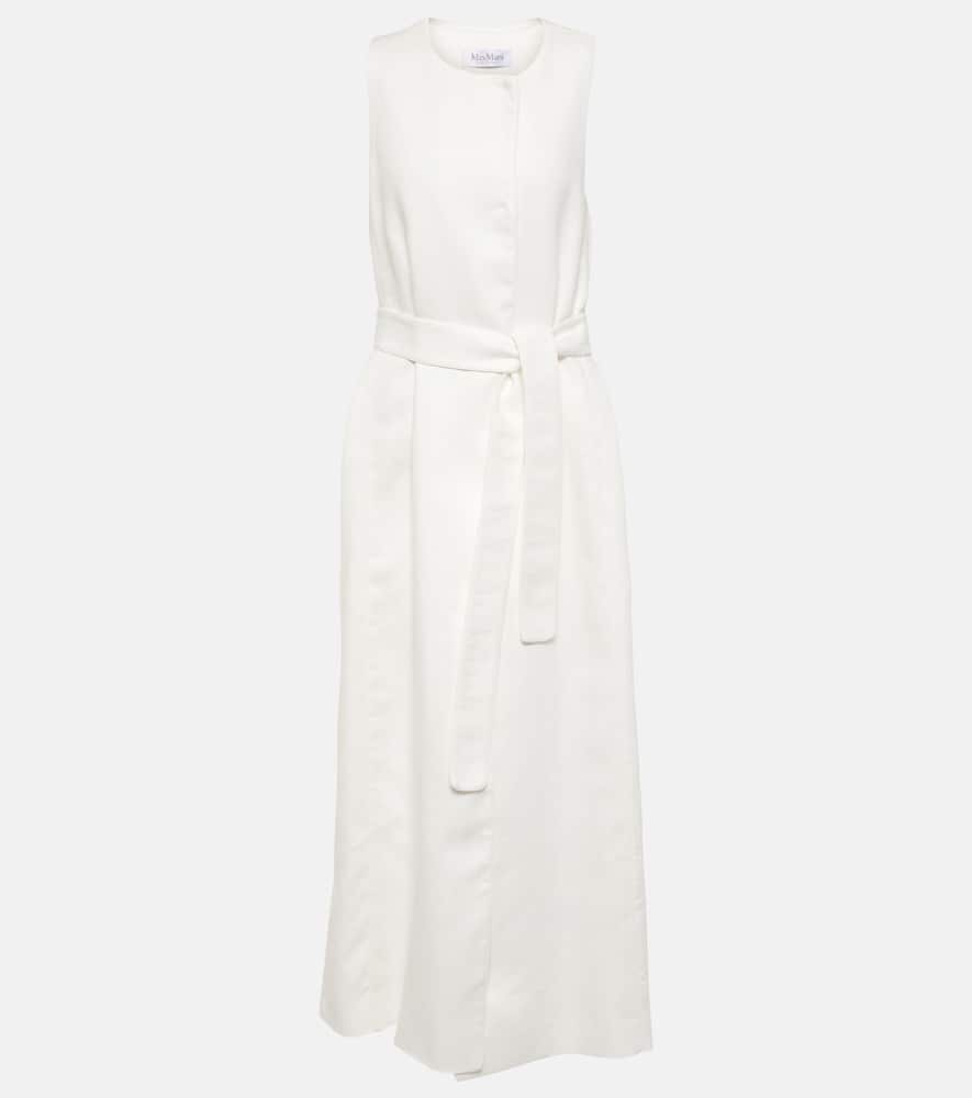 Material: 100% linen. Care instructions: dry clean. Made in Italy. Designer color name: Pregamenta. Closure: snap-buttoned fastenings. Attached belt. Shop the latest Max Mara Midi Dresses for women.