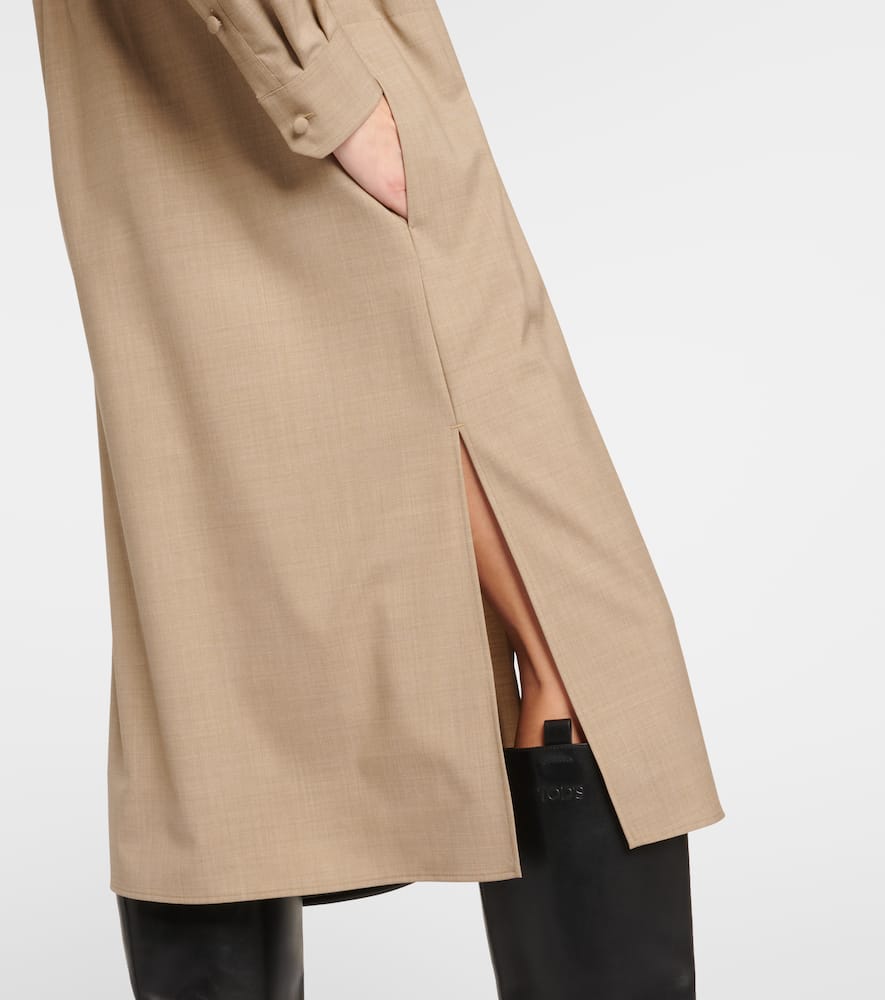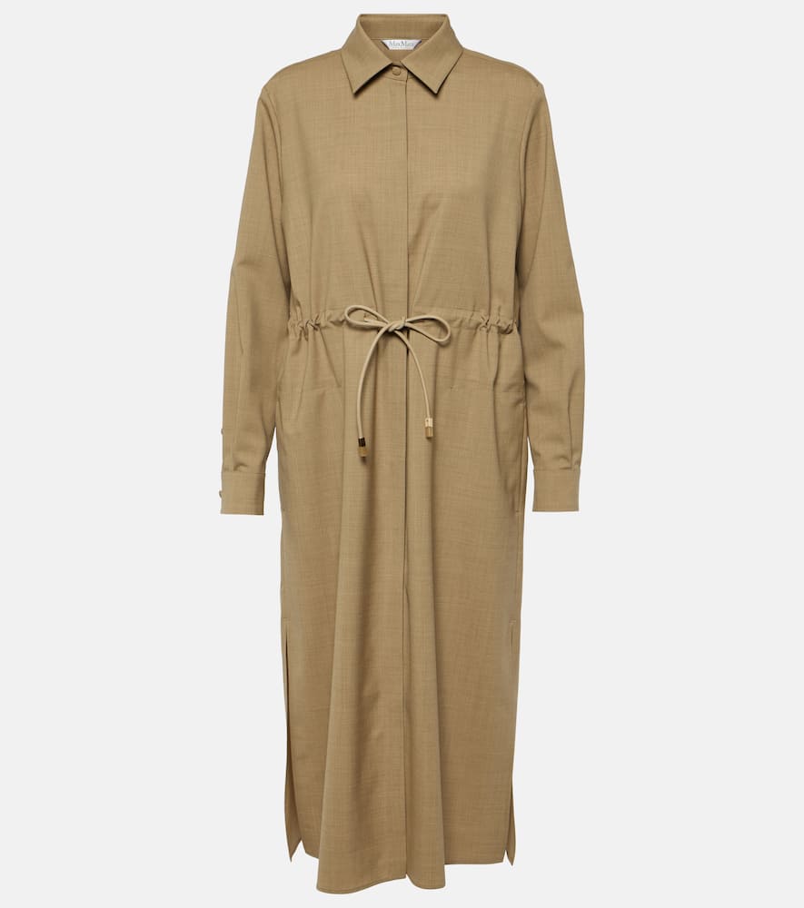 Material: 100% virgin wool. Care instructions: dry clean. Made in Italy. Designer color name: Juta. Closure: concealed button placket, self-ties. Pockets: side slit pockets. Side slits. Shop the latest Max Mara Midi Dresses for women.