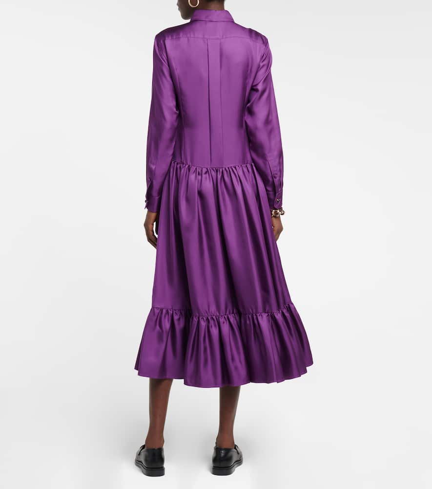 Made in Italy. Closure: concealed buttoned front. Pockets: side slit pockets. Designer color name: Iris. Material: 100% silk. Care instructions: dry clean. Shop the latest Max Mara Midi Dresses for women.