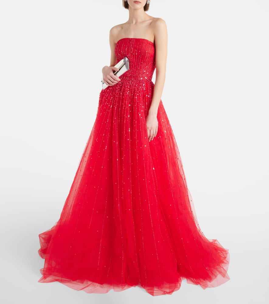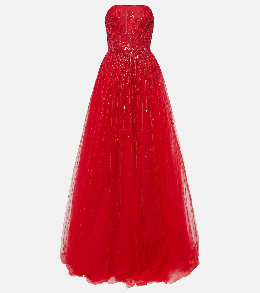 Material: 100% polyamide. Care instructions: dry clean. Made in the USA. Designer color name: Cherry Red. Material II: 100% cotton. Material III: 100% nylon. Boning. Closure: zipper, hook fastening. Shop the latest Monique Lhuillier Maxi Dresses for women.