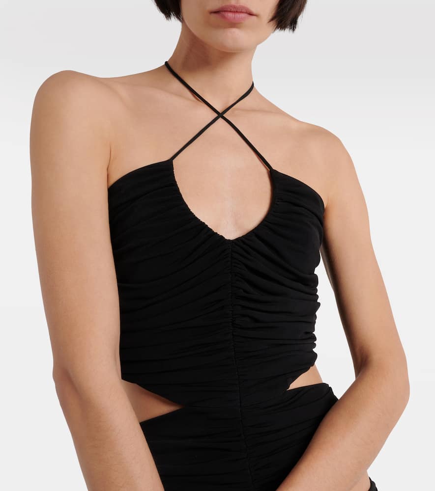 Material: 100% polyester. Care instructions: dry clean. Made in Lebanon. Designer color name: Black. Closure: zipper, hook fastening. Self-tie neck. Shop the latest Monot Mini Dresses for women.