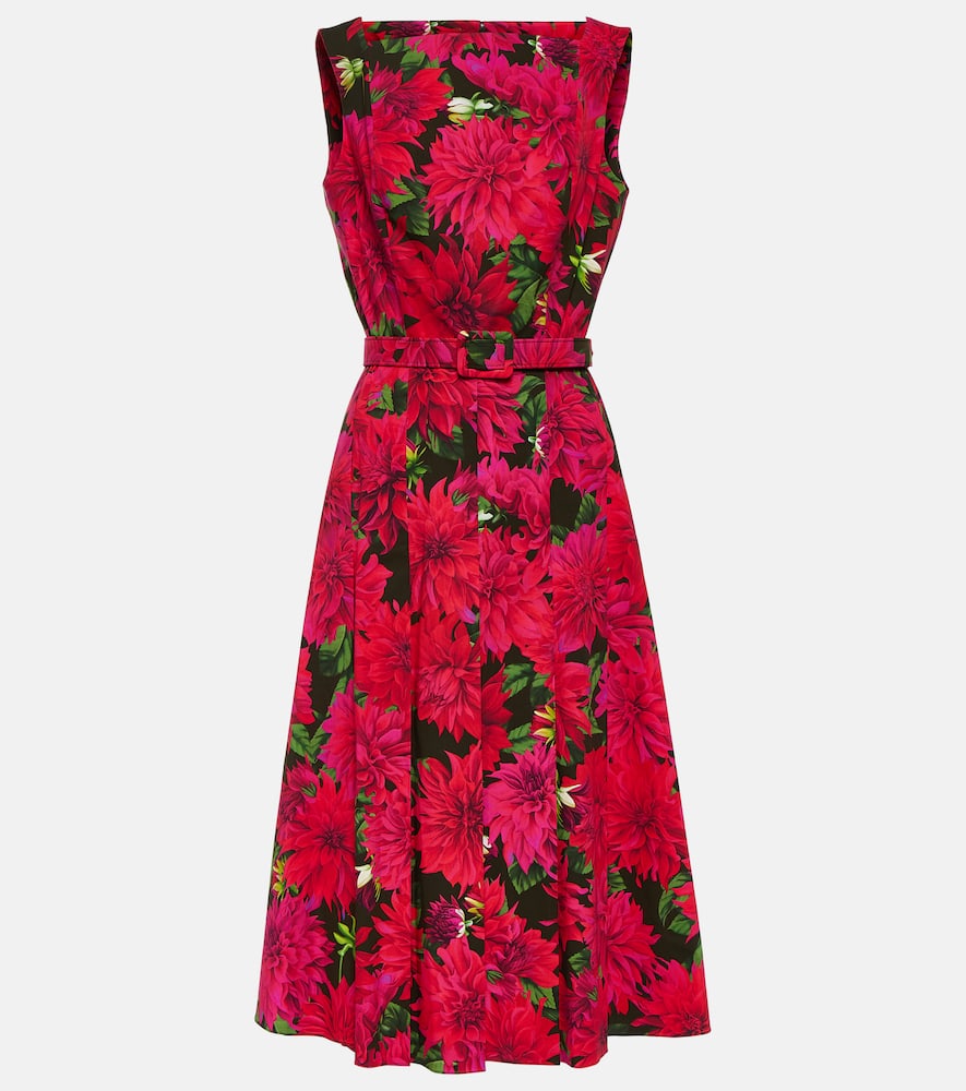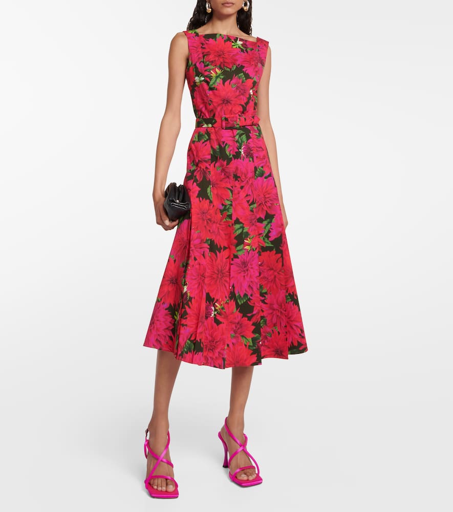 Made in Italy. Care instructions: machine wash at 30 degrees. Closure: zipped back. Designer color name: Fuchsia Olive. Material: 97% cotton, 3% elastane. Detachable belt. Shop the latest Oscar de la Renta Midi Dresses for women.