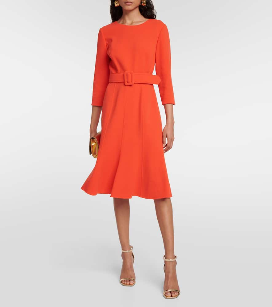Material: 95% wool, 1% elastane, 4% polyamide. Made in Italy. Closure: zipped back. Designer color name: Vermilion. Care instructions: dry clean. Shop the latest Oscar de la Renta Midi Dresses for women.