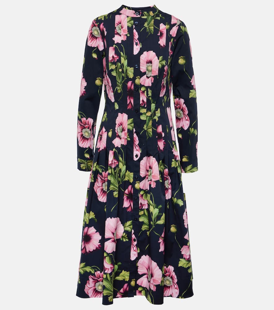 Material: 97% cotton, 3% elastane. Care instructions: dry clean. Made in Italy. Designer color name: Navy/Pink. Closure: buttoned placket. Shop the latest Oscar de la Renta Midi Dresses for women.