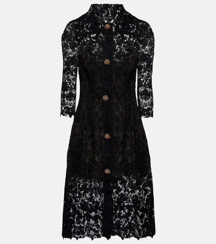 Material: 100% polyester. Care instructions: dry clean. Made in Italy. Designer color name: Black. Closure: snap-buttoned front. Shop the latest Oscar de la Renta Midi Dresses for women.