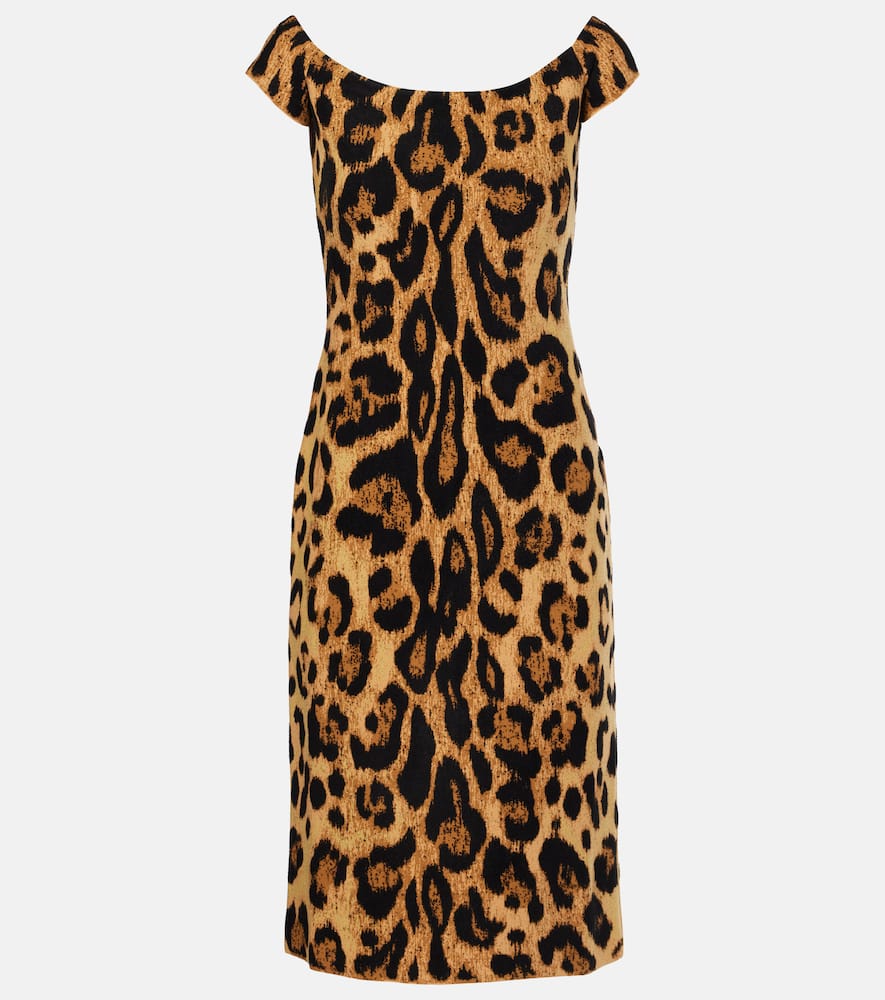 Oscar de la Renta Leopard-print off-shoulder midi dress