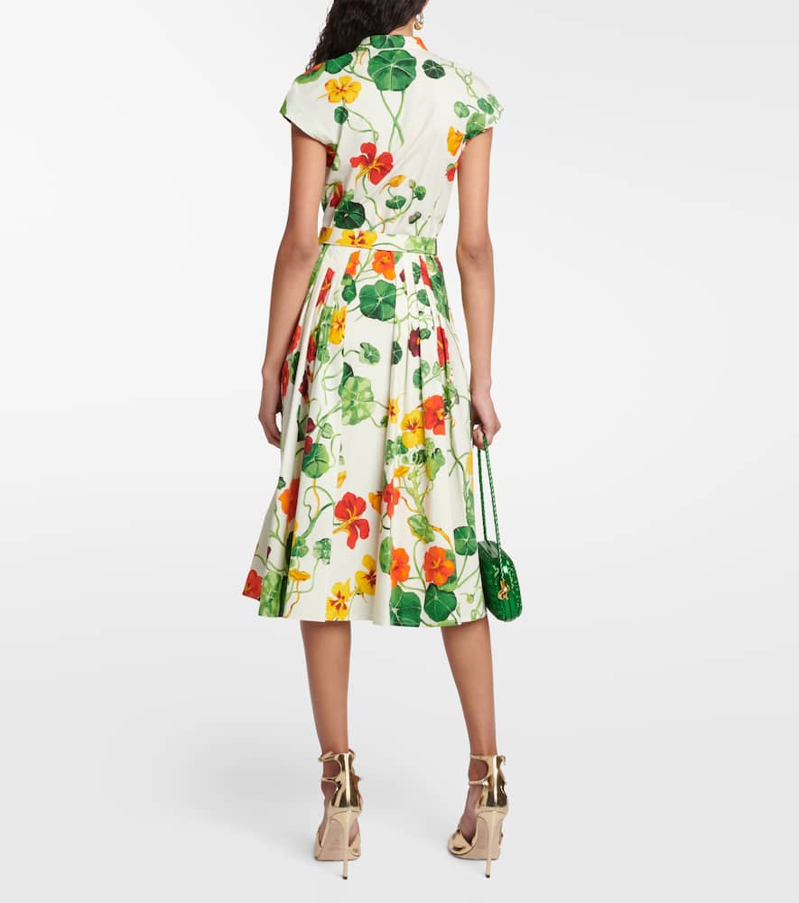 Made in Italy. Closure: concealed buttoned front. Care instructions: machine wash at 30 degrees. Designer color name: Ivory Multi. Pockets: side slit pockets. Material: 97% cotton, 3% elastane. Detachable belt. Shop the latest Oscar de la Renta Midi Dresses for women.