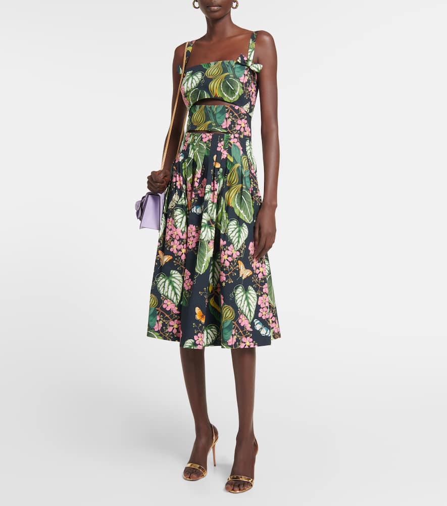 Oscar de la Renta Printed cotton-blend poplin midi dress