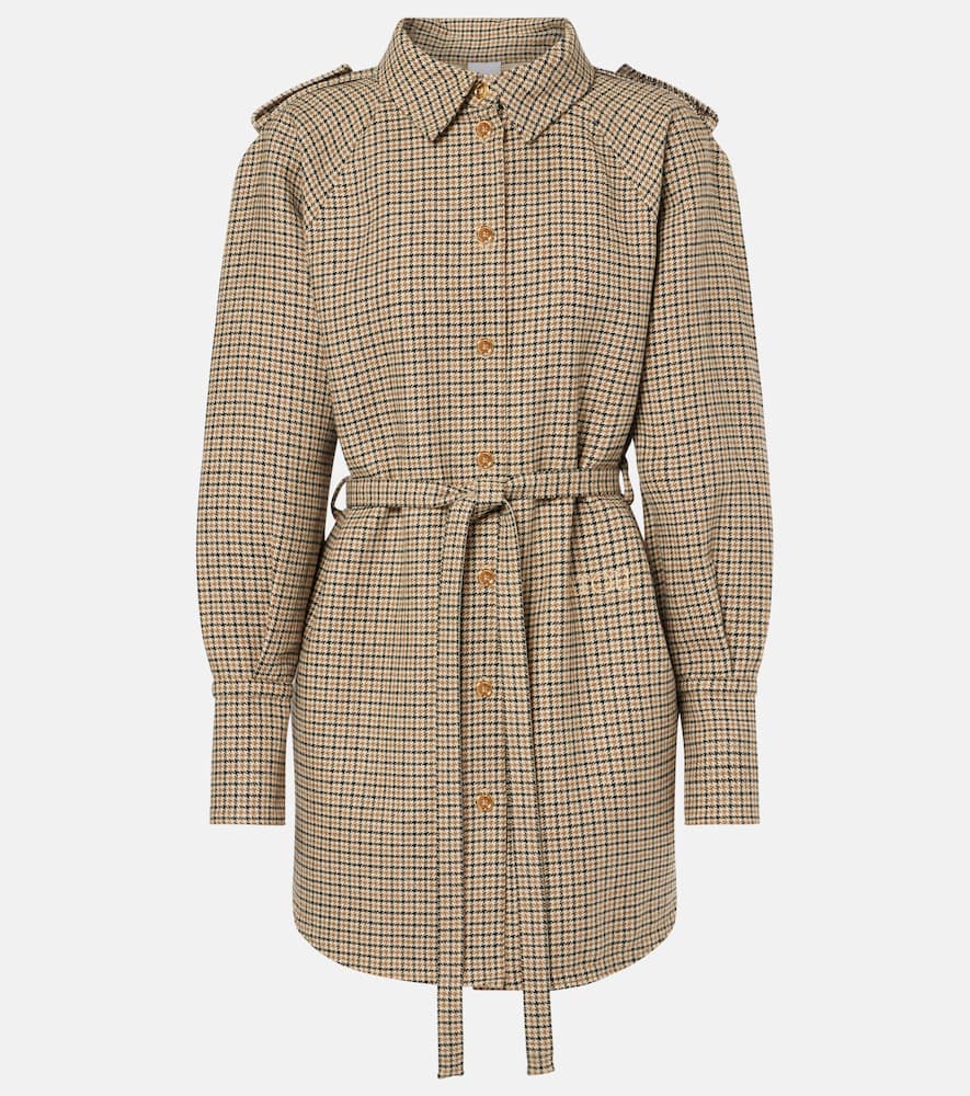 Patou Houndstooth flannel shirt dress
