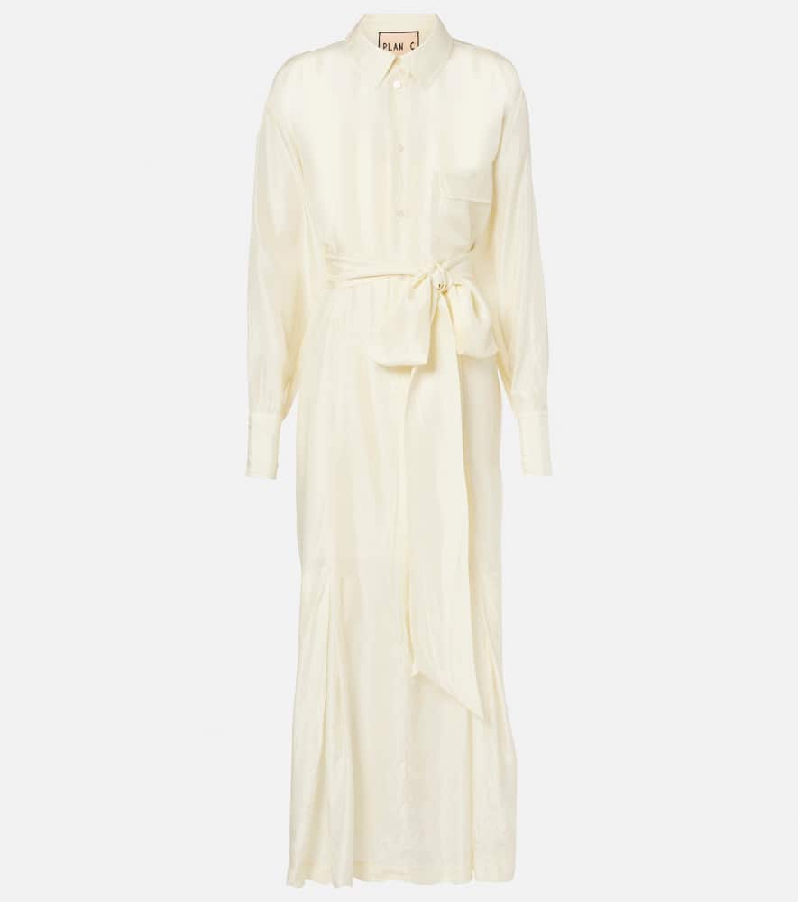 Material: 100% silk. Care instructions: hand wash. Made in Italy. Designer color name: Butter. Closure: buttoned front. Shop the latest Plan C Maxi Dresses for women.