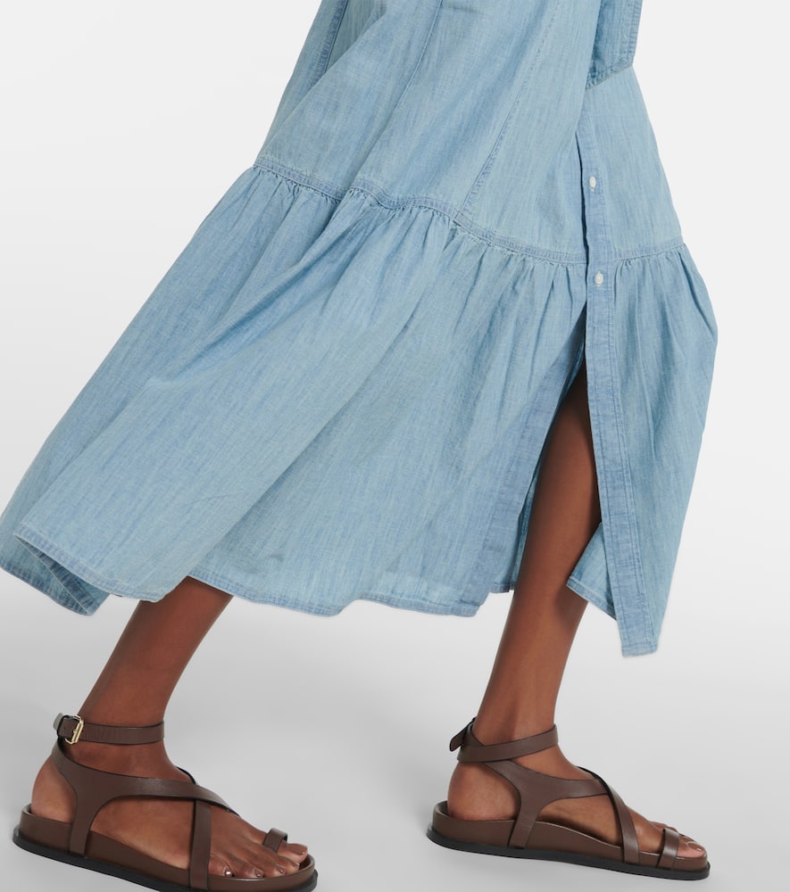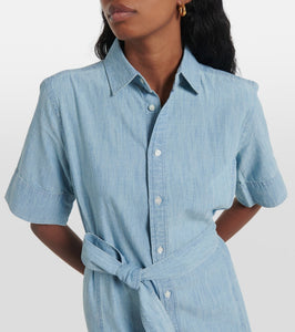 Material: 100% cotton. Care instructions: machine wash at 30 degrees. Made in the Philippines. Designer color name: Chambray. Contains non-textile parts of animal origin. Closure: buttoned front, belted waist. Detachable belt. Pockets: side slit pockets. Shop the latest Polo Ralph Lauren Midi Dresses for women.