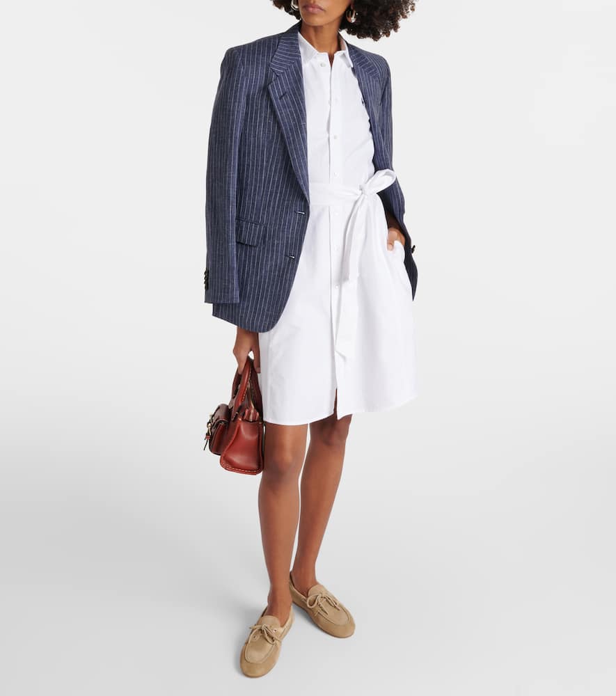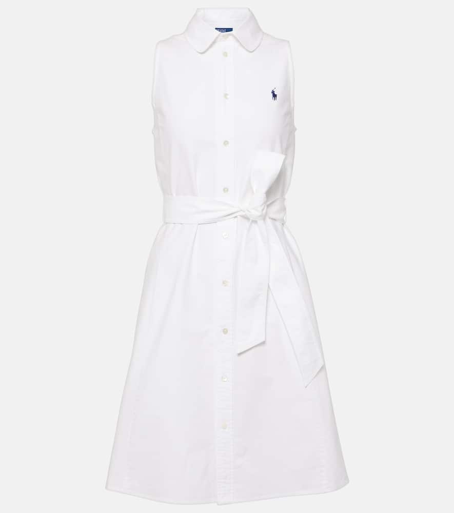 Material: 100% cotton. Care instructions: machine wash at 40 degrees. Made in Vietnam. Designer color name: Hunter Navy/Cricket Cream. Closure: buttoned front. Detachable belt. Shop the latest Polo Ralph Lauren Mini Dresses for women.