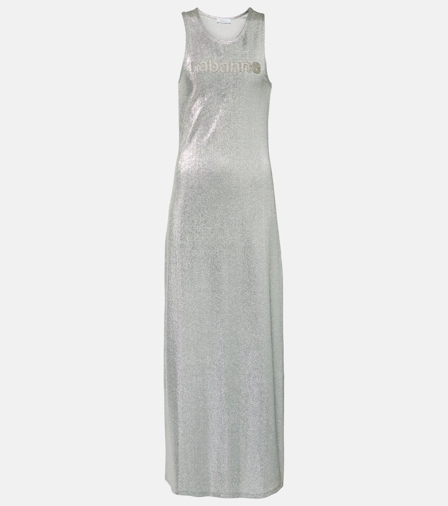 Material: 77% viscose, 16% polyester, 7% elastane. Care instructions: dry clean. Made in Portugal. Designer color name: Silver. Shop the latest Rabanne Maxi Dresses for women.
