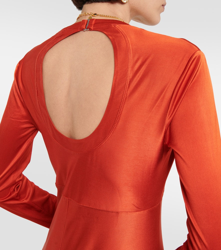 Self-tie sides. Material: 90% viscose, 10% elastane. Care instructions: dry clean. Designer color name: Paprika. Made in Tunisia. Shop the latest Rabanne Maxi Dresses for women.
