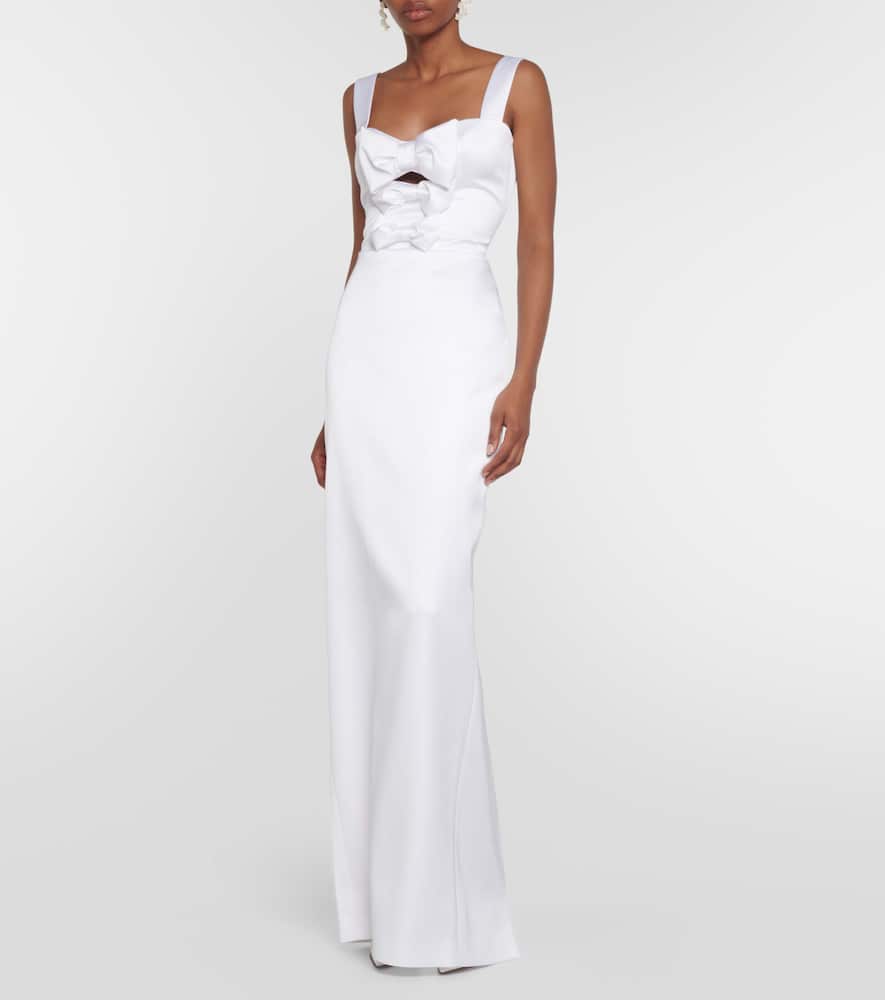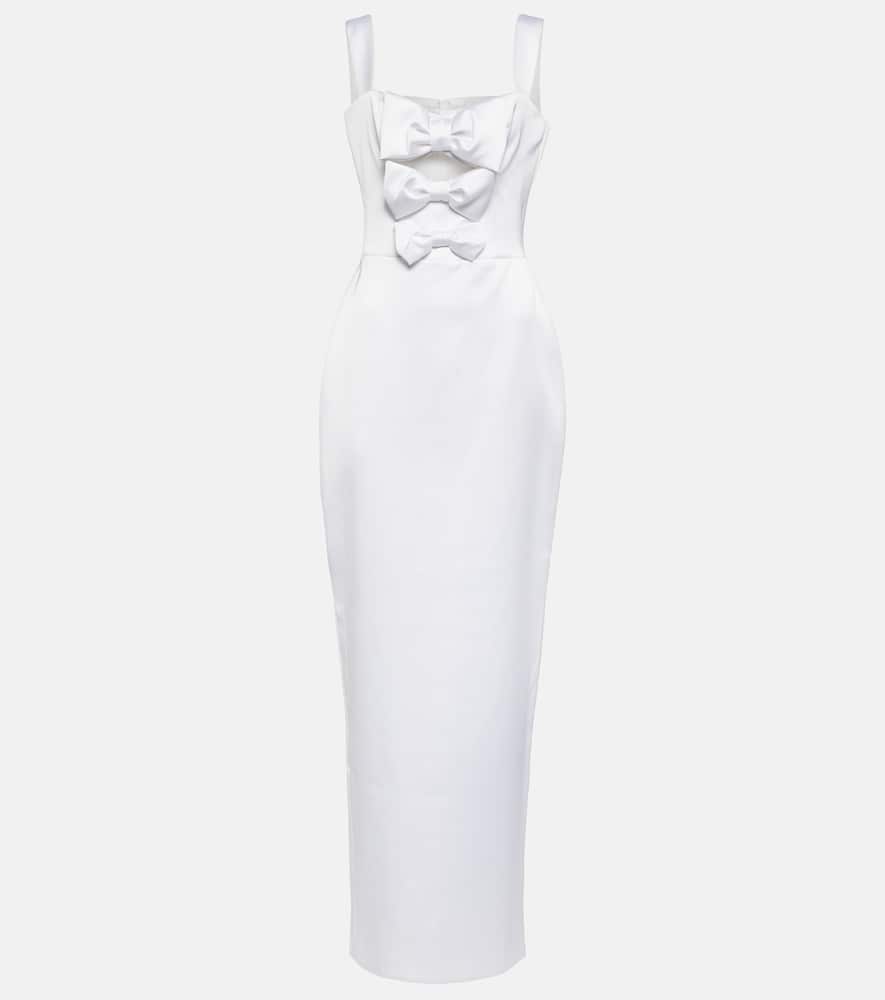 Material: 97% polyester, 3% elastane. Care instructions: dry clean. Made in Armenia. Designer color name: White. Lining: 98% polyester, 2% elastane. Closure: zipped back. Shop the latest Rasario Maxi Dresses for women.
