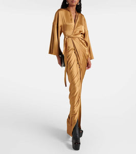 Material: 61% acetate, 39% viscose. Care instructions: do not wash. Made in Italy. Designer color name: Honey. Shop the latest Rick Owens Maxi Dresses for women.