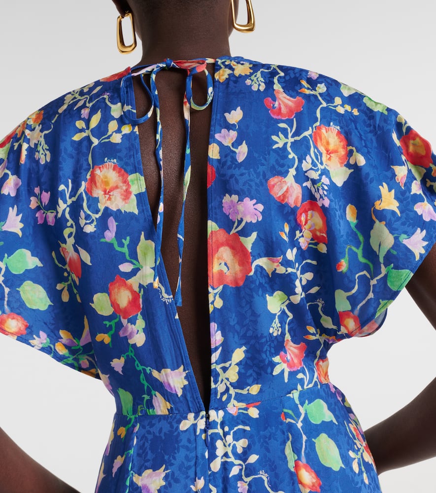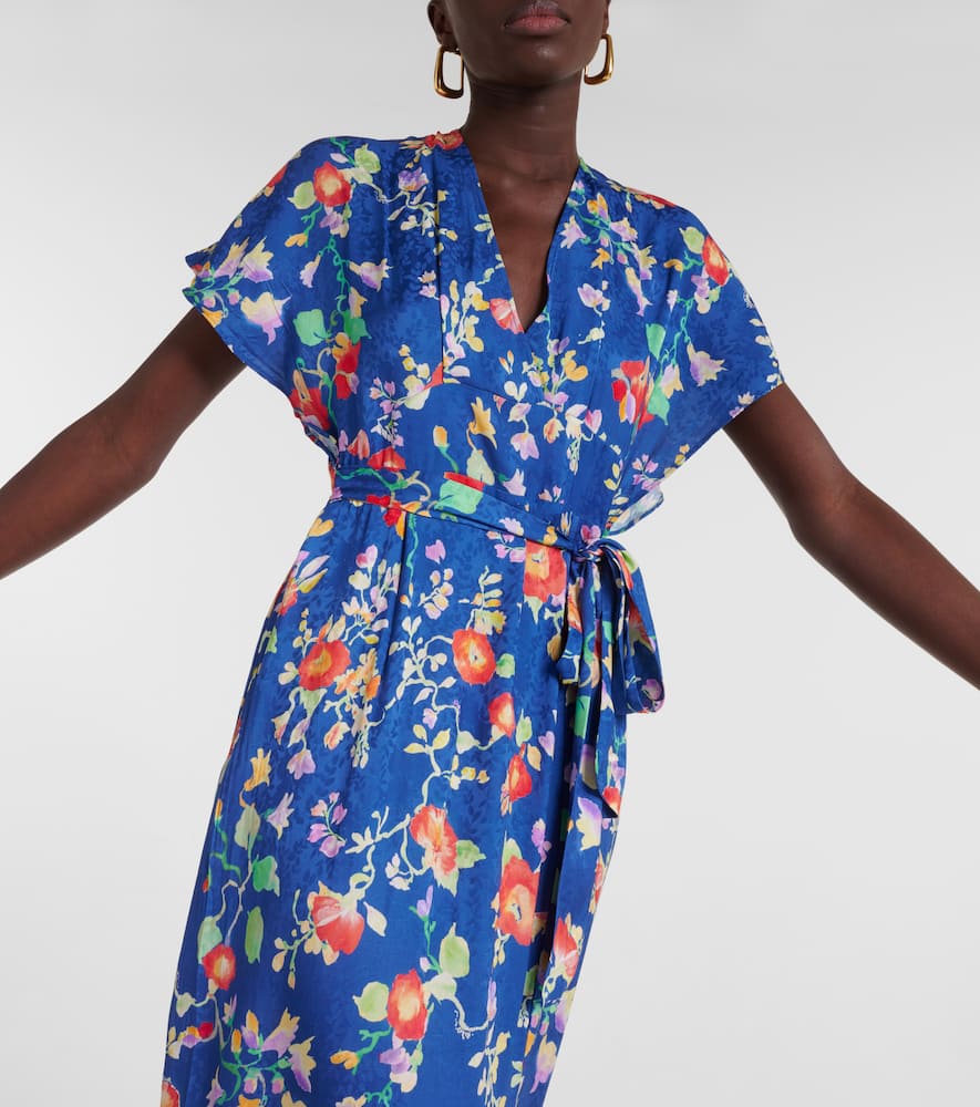 Material: 100% viscose. Care instructions: dry clean. Made in Vietnam. Designer color name: Waterblossom Indigo. Closure: invisible zipper, self-ties. Shop the latest Rixo Midi Dresses for women.