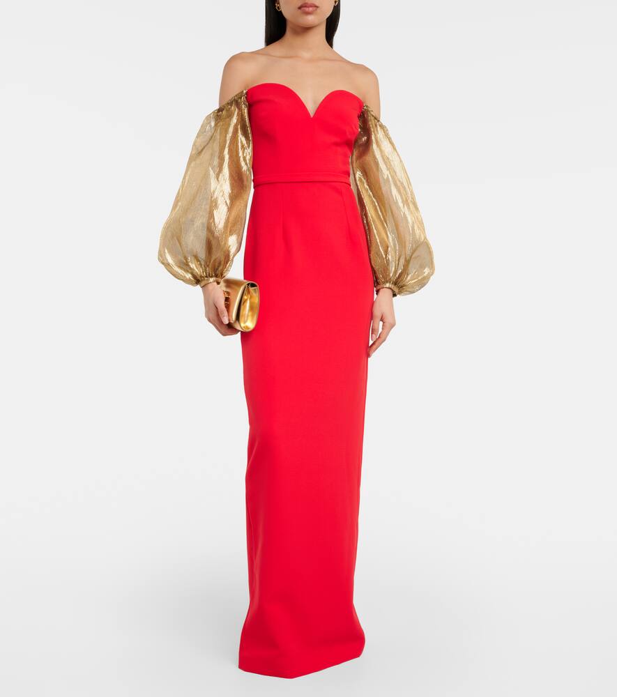 Material: 92% polyester, 8% elastane. Care instructions: dry clean. Made in Lithuania. Designer color name: Cherry Red. Material II: 45% polyamide, 38% polyester, 17% metallic fibres. Closure: zipped back. Shop the latest Safiyaa Maxi Dresses for women.