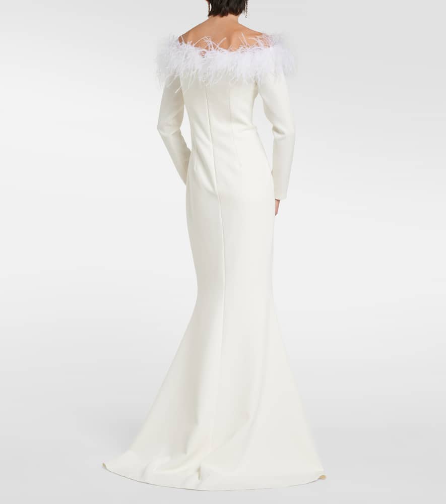 Safiyaa Bridal Starlana feather-trimmed crêpe gown
