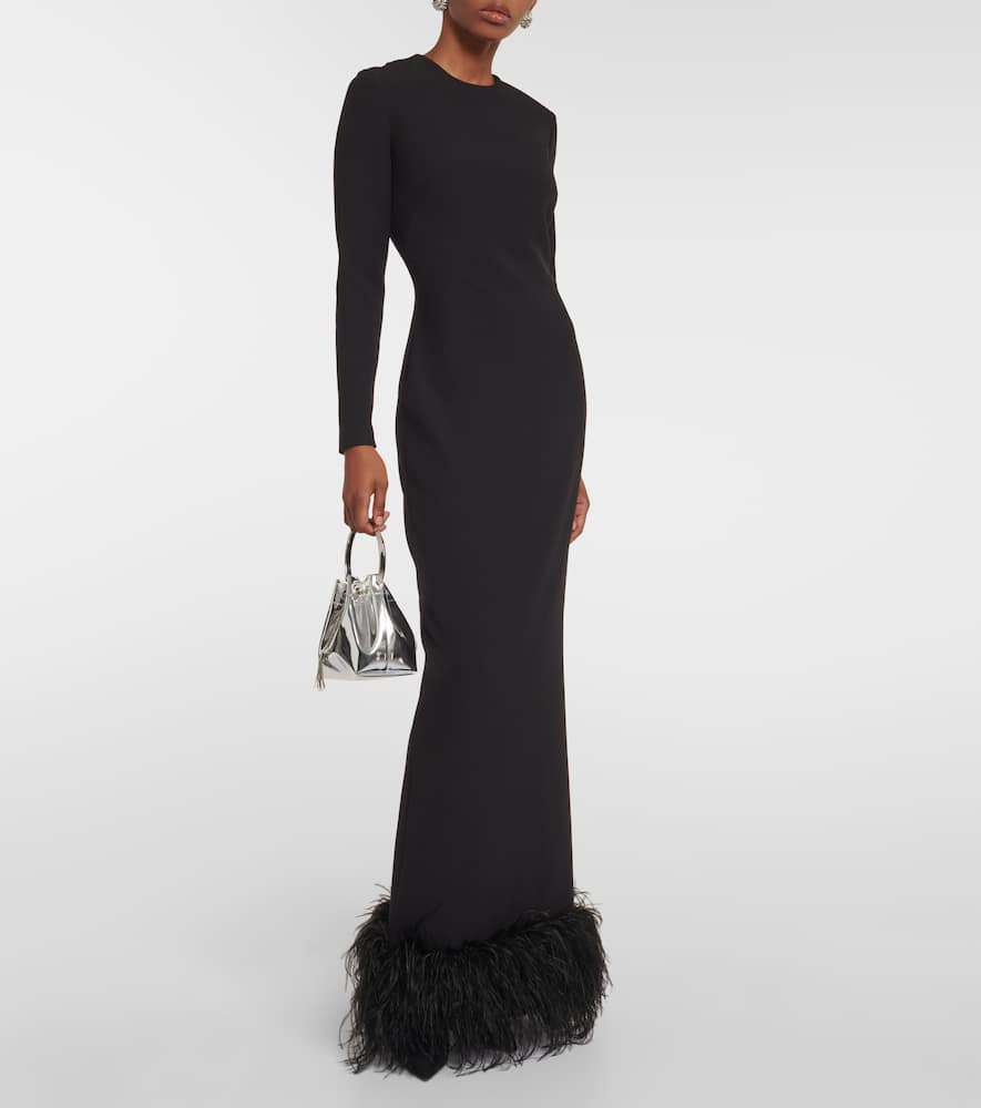 Safiyaa Feather-trimmed crêpe gown