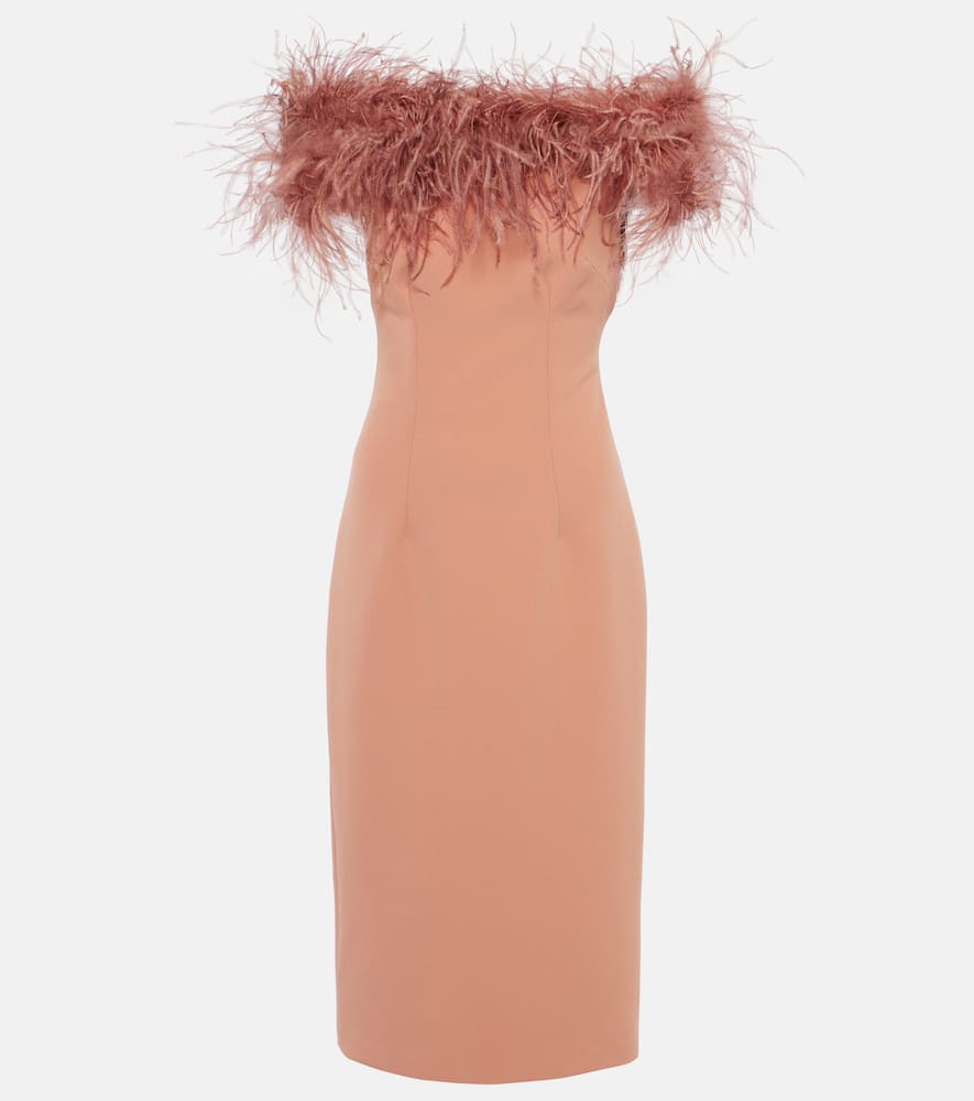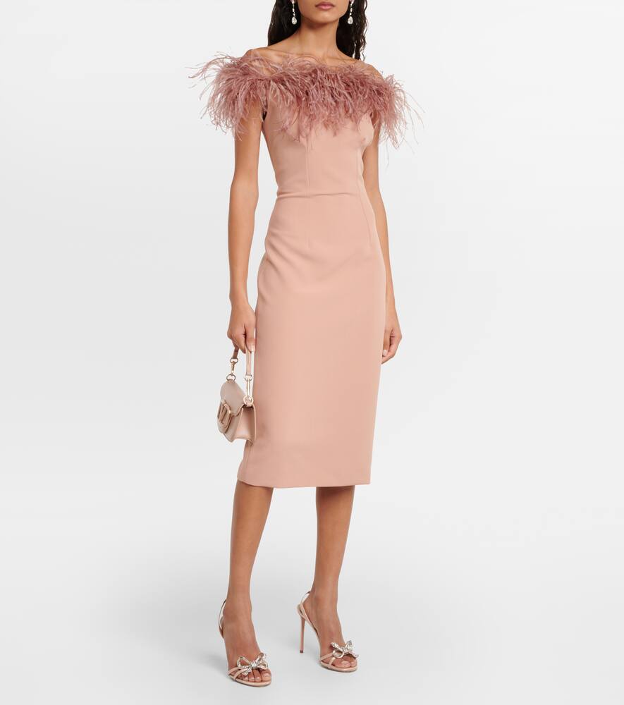 Material: 92% polyester, 8% elastane. Care instructions: dry clean. Made in Lithuania. Designer color name: Dusty Pink With Dusty Pink. Lining: 97% polyester, 3% elastane. Trim: 100% ostrich feathers. Closure: zipped back. Shop the latest Safiyaa Midi Dresses for women.