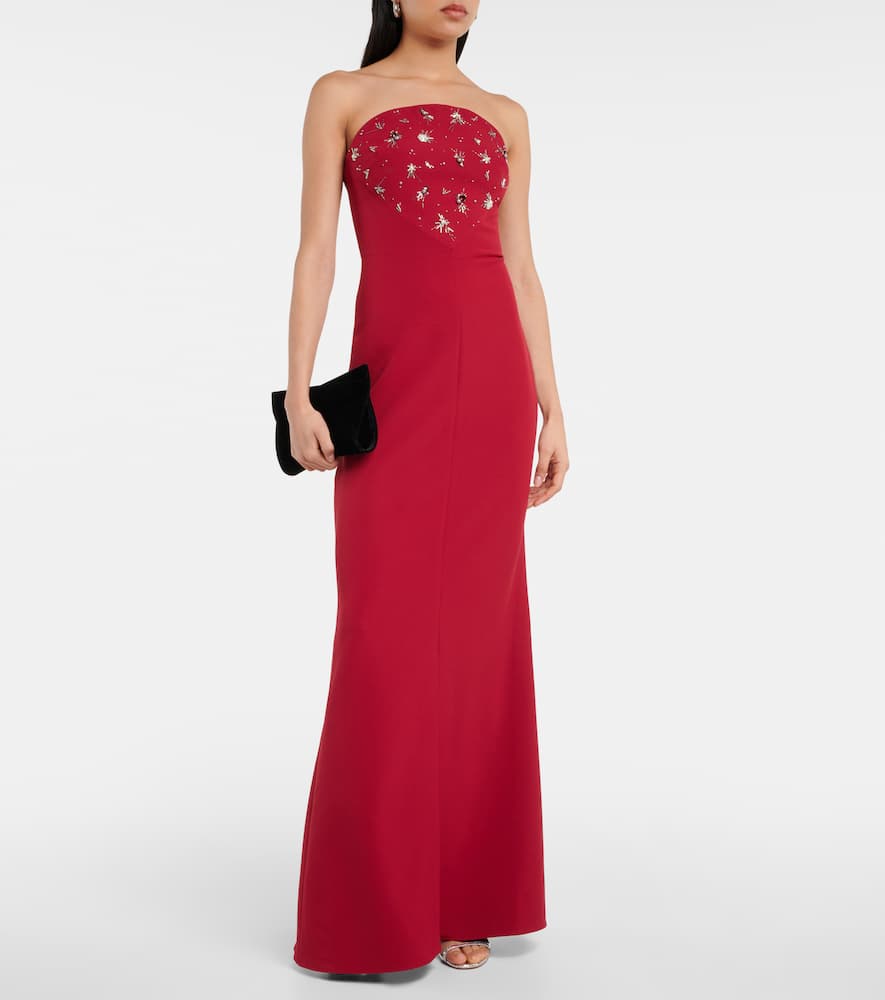 Material: 92% polyester, 8% elastane. Care instructions: dry clean. Made in Lithuania. Designer color name: Rhubarb. Trim: 15% metal, 70% glass, 15% plastic. Closure: zipped back. Shop the latest Safiyaa Maxi Dresses for women.