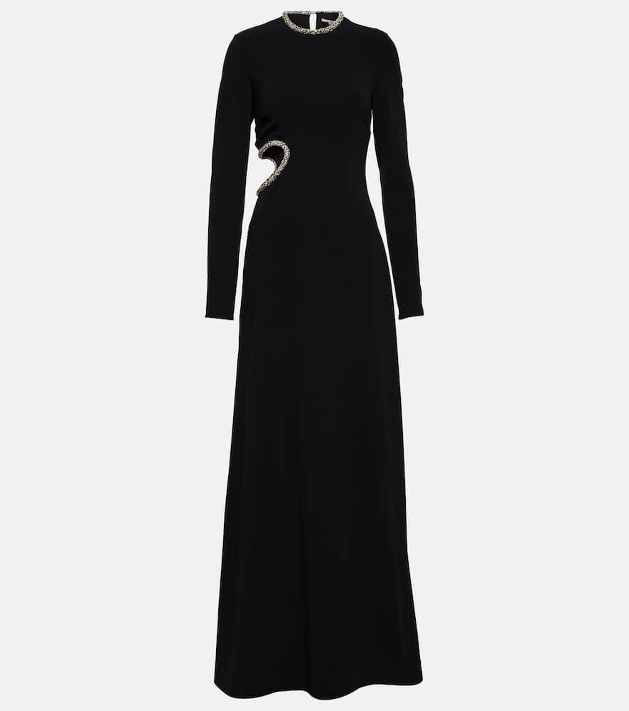 Lining: 73% acetate, 23% silk, 4% elastane. Material: 51% viscose, 47% acetate, 2% elastane. Made in Italy. Designer color name: Black. Closure: zipped side. Care instructions: dry clean. Comes with garment bag. Shop the latest Stella McCartney Maxi Dresses for women.