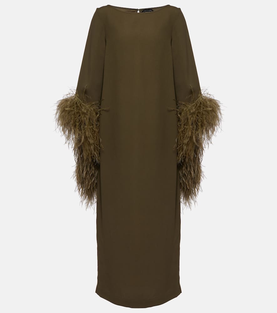 Material: 78% acetate, 22% viscose. Care instructions: dry clean. Made in Italy. Designer color name: Forest Green. Trim: 100% ostrich feathers. Closure: zipped back, invisible zipper, button fastening. Shop the latest Taller Marmo Midi Dresses for women.