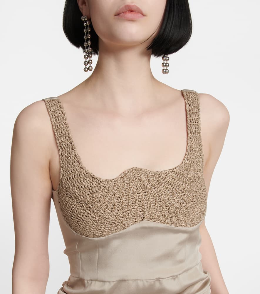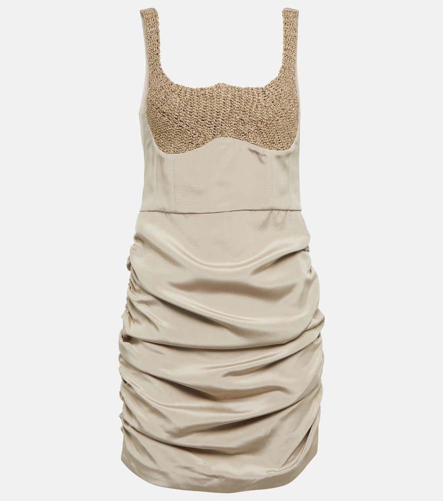 Material: 96% silk, 4% elastane. Made in Poland. Trim: 20% viscose, 80% cotton. Designer color name: Beige. Care instructions: dry clean. Shop the latest The Mannei Mini Dresses for women.