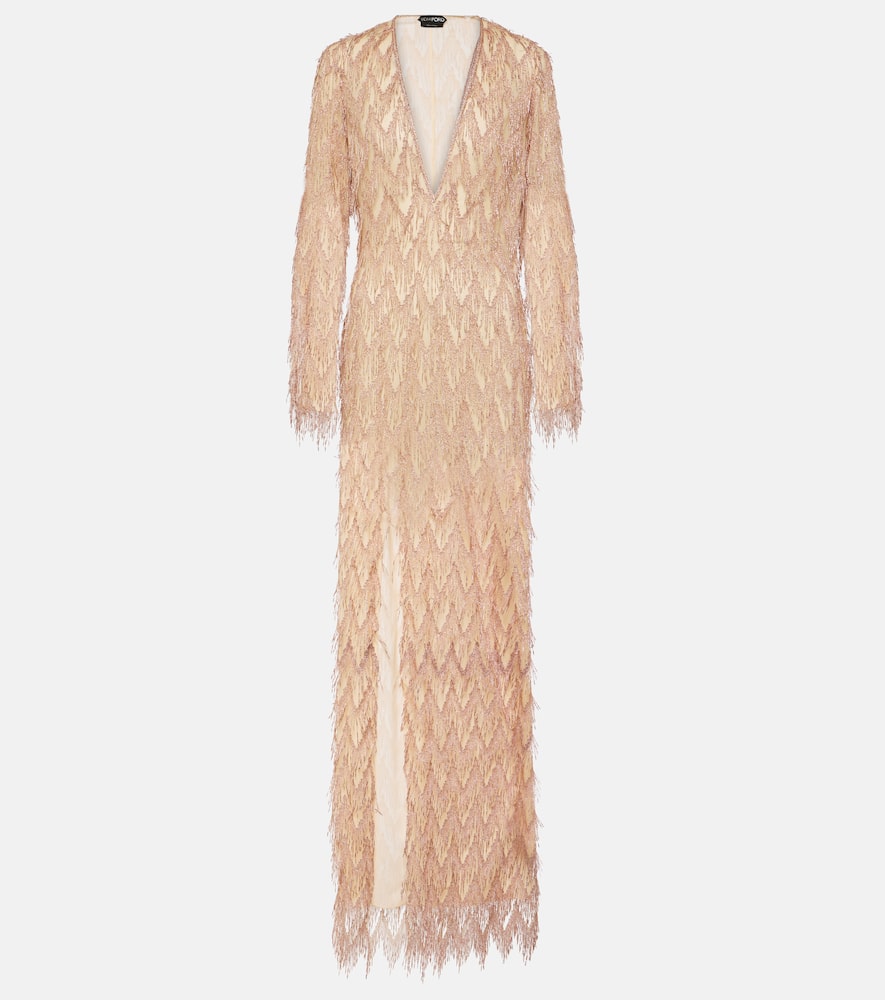 Material: 80% polyester, 20% polyamide. Care instructions: dry clean. Made in Italy. Designer color name: Pink. Lining: 92% silk, 8% elastane. Closure: zipped side. Shop the latest Tom Ford Maxi Dresses for women.