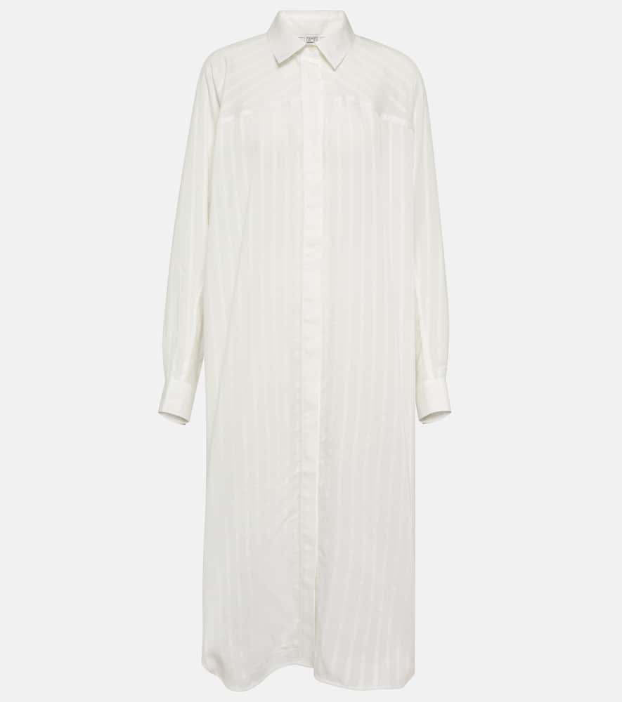 Material: 88% lyocell, 12% silk. Closure: concealed buttoned front. Designer color name: White. Care instructions: dry clean. Shop the latest Toteme Midi Dresses for women.