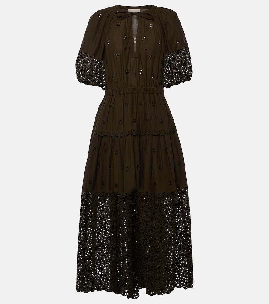 Material: 100% cotton. Care instructions: machine wash. Made in India. Designer color name: Militaire. Lining: 100% cotton. Closure: self-ties. Shop the latest Ulla Johnson Midi Dresses for women.