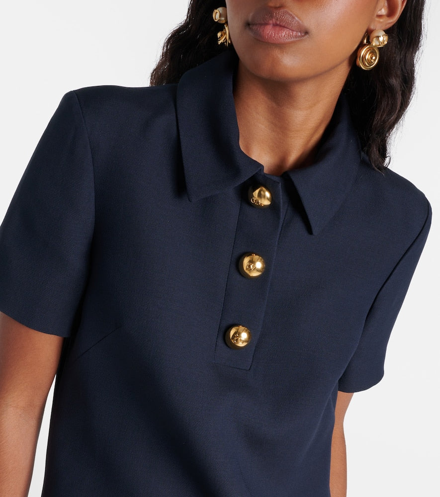 Material: 65% wool, 35% silk. Care instructions: dry clean. Made in Italy. Designer color name: Navy. Lining: 91% viscose, 9% elastane. Shop the latest Valentino Mini Dresses for women.