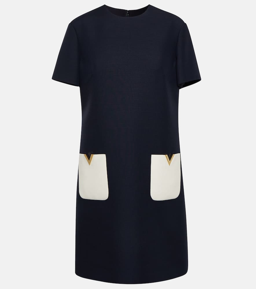 Made in Italy. Material: 35% silk, 65% wool. Closure: invisible zipper. Designer color name: Navy/Avorio. Lining: 9% elastane, 91% viscose. Pockets: slit pockets. Care instructions: dry clean. Shop the latest Valentino Mini Dresses for women.