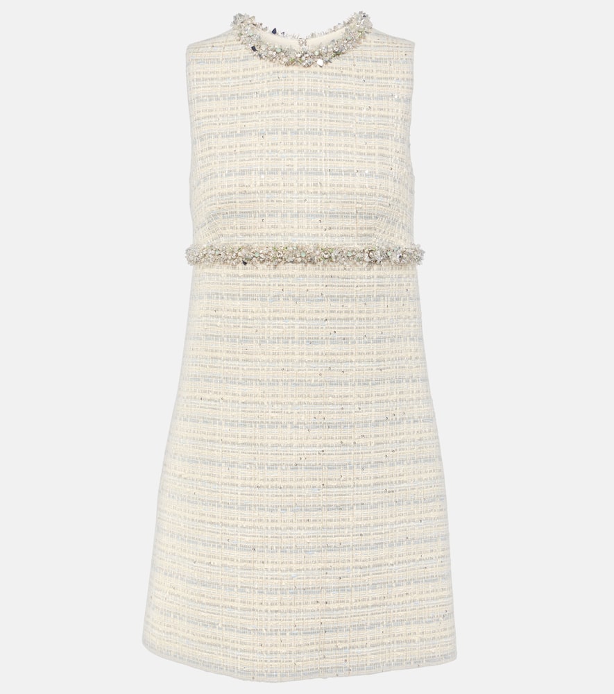 Material: 72% cotton, 14% polyester, 9% viscose, 5% polyamide. Care instructions: do not wash. Made in Italy. Designer color name: Avorio/ Grey Blue/ Strass. Closure: invisible zipper. Material II: 100% polyamide. Material III: 100% silk. Lining: 100% silk. Material IV: 100% polyester. Shop the latest Valentino Mini Dresses for women.