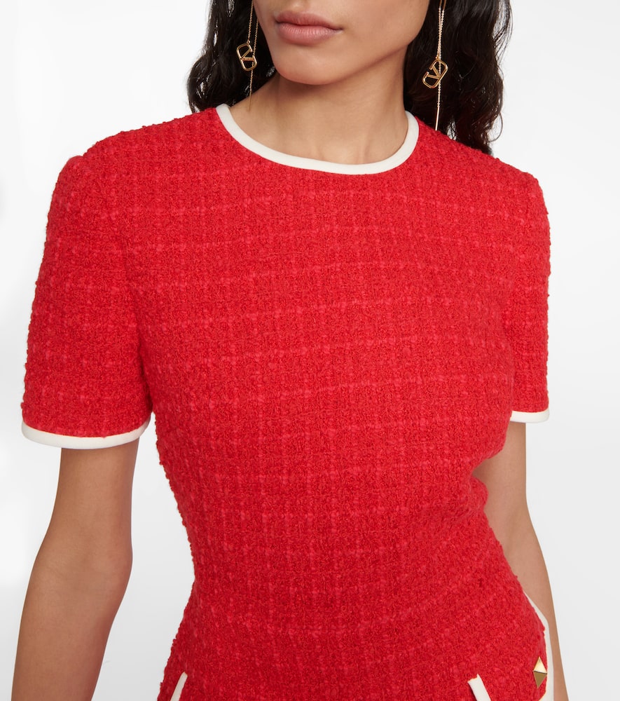 Material II: 65% wool, 35% silk. Made in Italy. Closure: zipped back. Designer color name: Rosso/Avorio. Material: 10% acrylic, 5% polyamide, 35% cotton, 45% viscose, 5% wool. Lining: 100% silk, fully lined. Care instructions: dry clean. Shop the latest Valentino Midi Dresses for women.