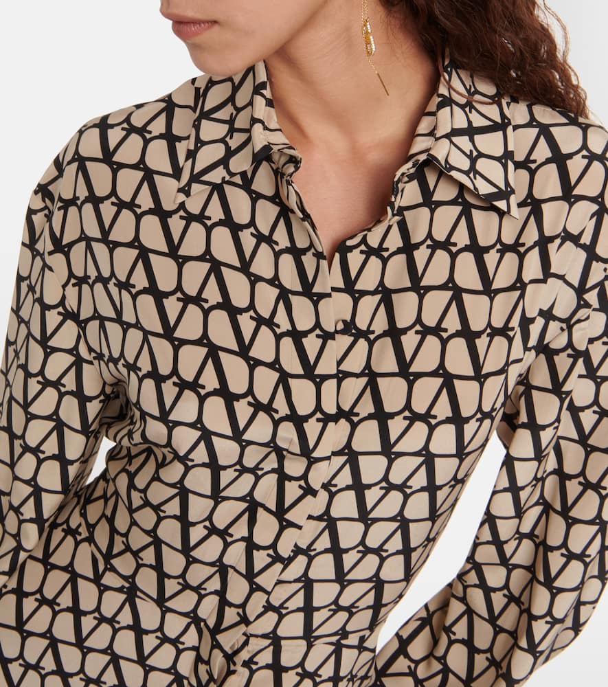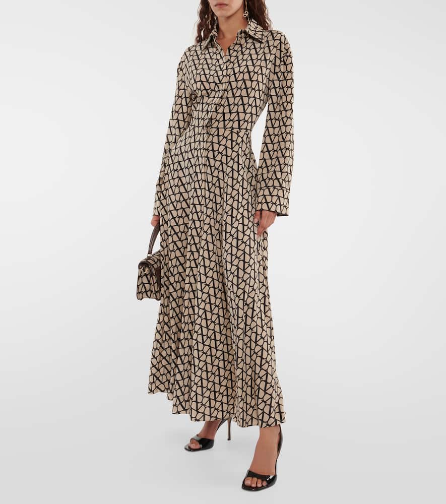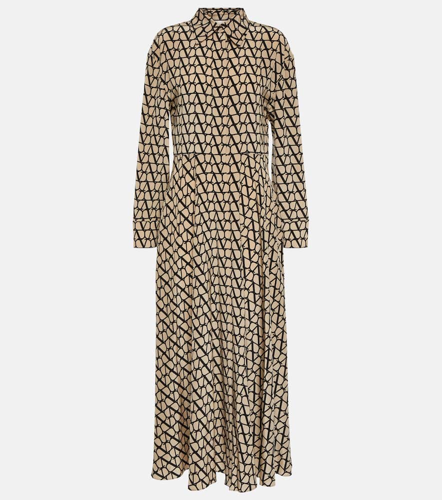 Material: 100% silk. Care instructions: dry clean. Made in Italy. Designer color name: Beige/Nero. Pocket lining: 91% viscose, 9% elastane. Closure: buttoned front. Buttoned cuffs. Pockets: side slit pockets. Shop the latest Valentino Midi Dresses for women.
