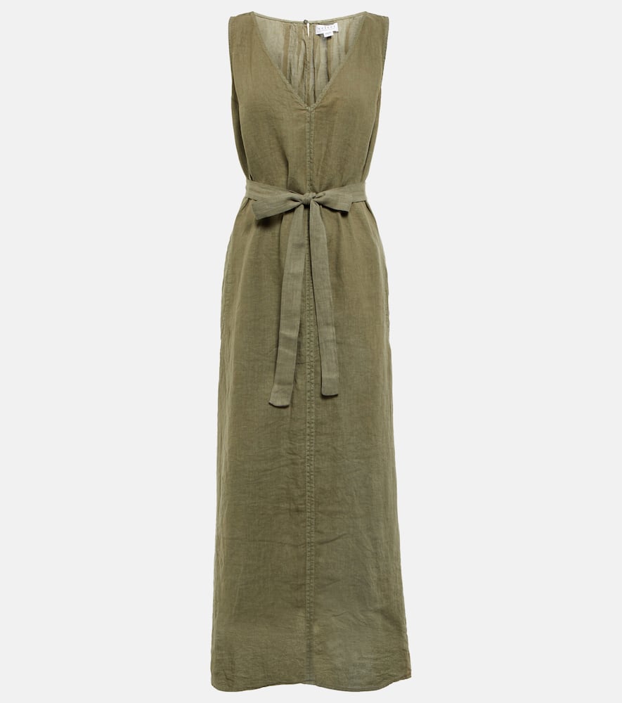 Care instructions: machine wash cold. Made in China. Material: 100% linen. Designer color name: Olive. Pockets: side slit pockets. Shop the latest Velvet Maxi Dresses for women.
