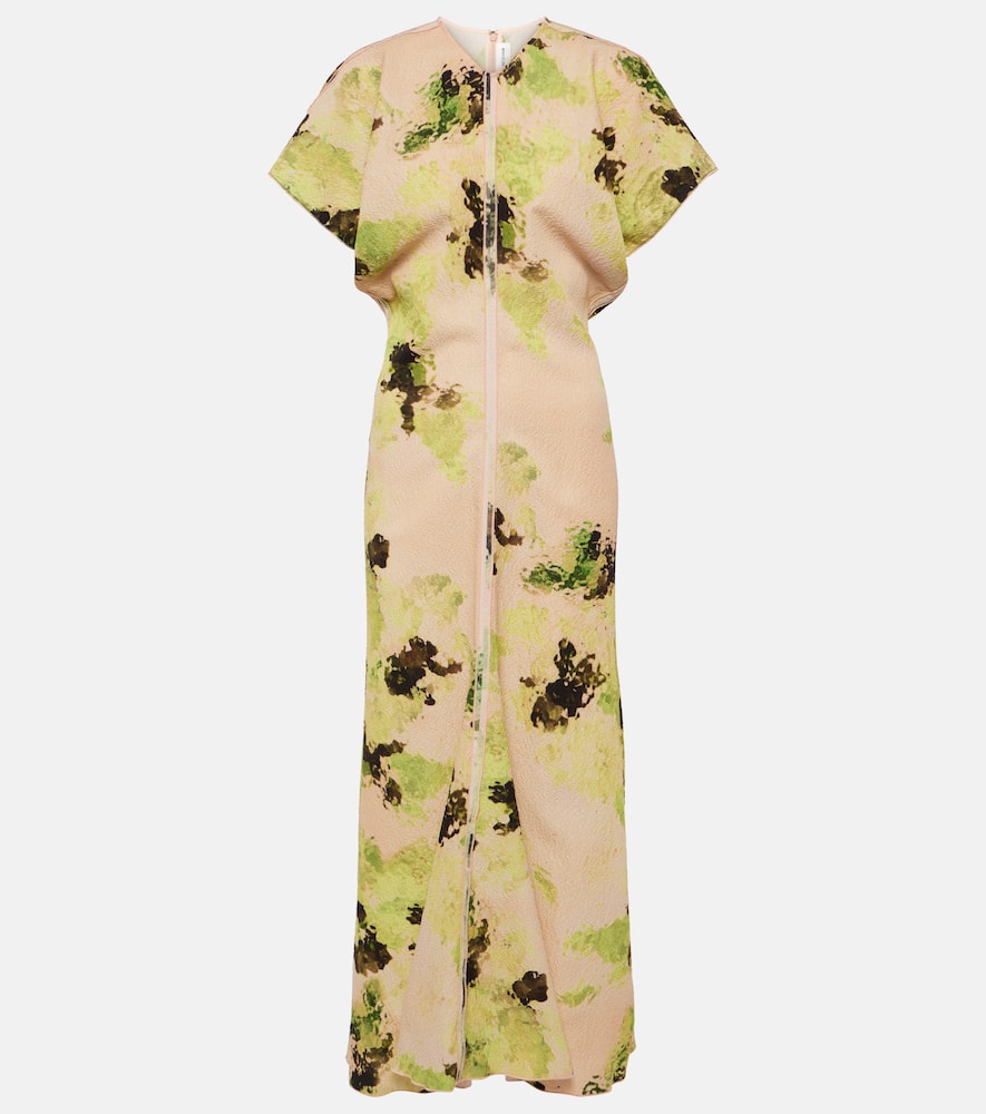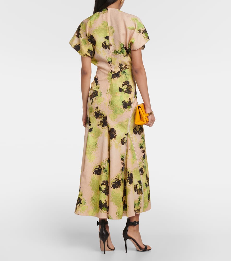 Material: 63% polyester, 37% cotton. Care instructions: specialist clean. Made in Portugal. Designer color name: Peach/Lime. Closure: zipped back. Shop the latest Victoria Beckham Midi Dresses for women.