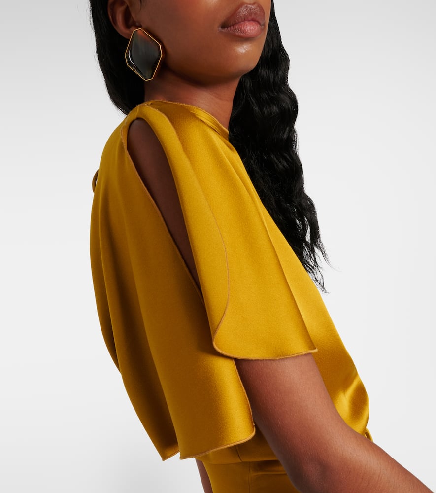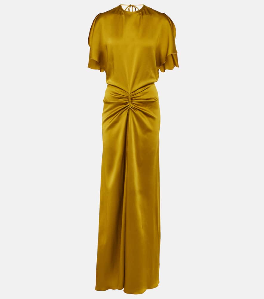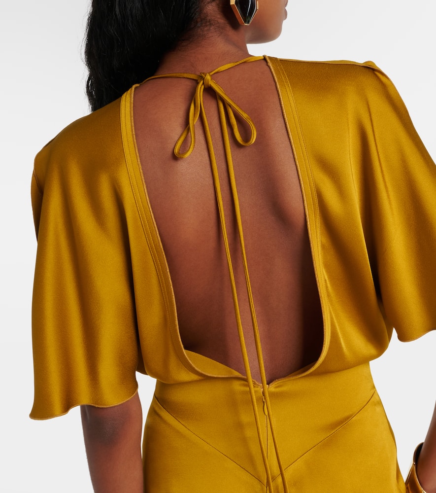 Material: 71% acetate, 29% viscose. Care instructions: dry clean. Made in Portugal. Designer color name: Harvest Gold. Closure: invisible zipper. Shop the latest Victoria Beckham Maxi Dresses for women.