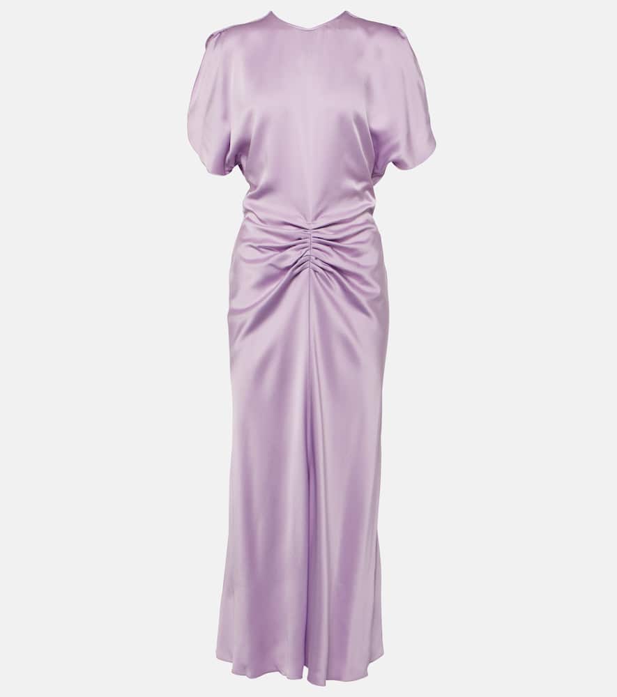 Material: 71% acetate, 29% viscose. Care instructions: dry clean. Made in Portugal. Designer color name: Petunia. Closure: invisible zipper. Shop the latest Victoria Beckham Midi Dresses for women.