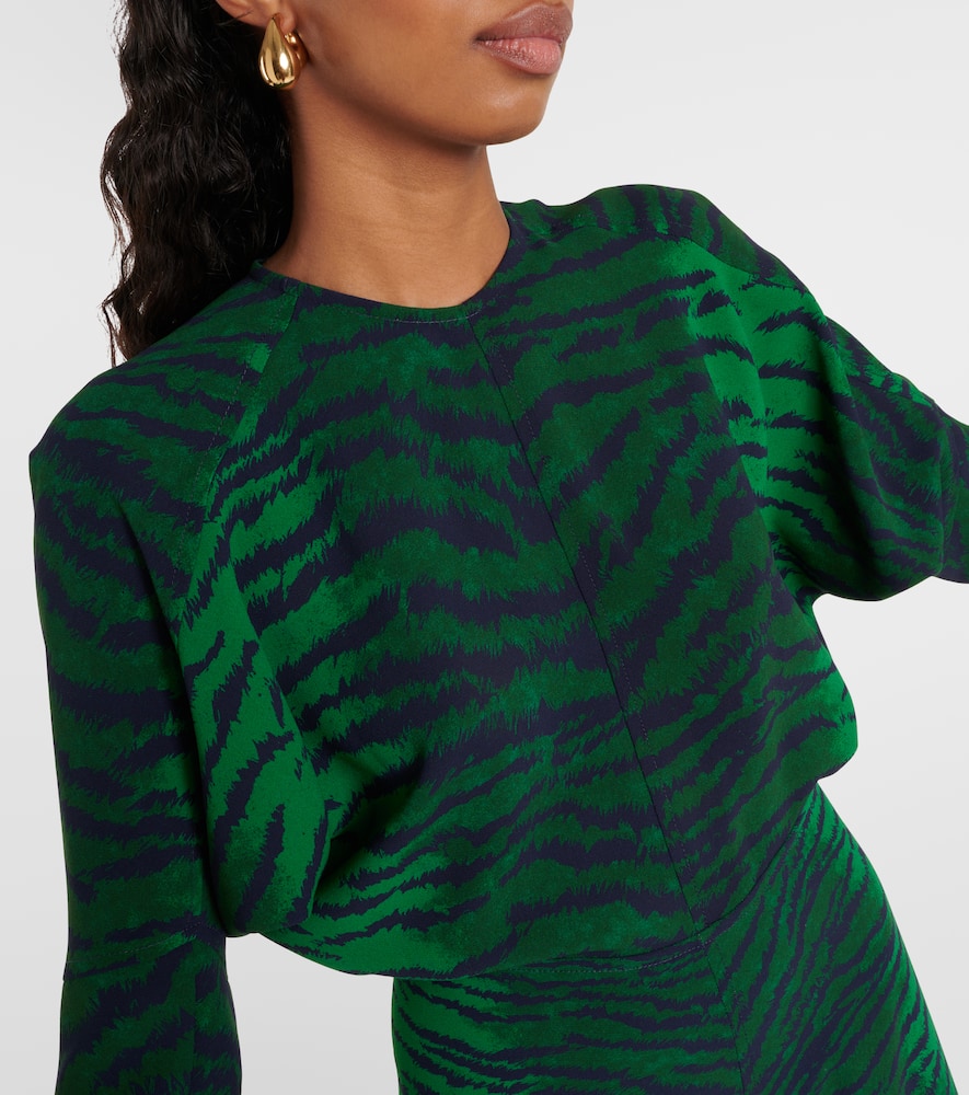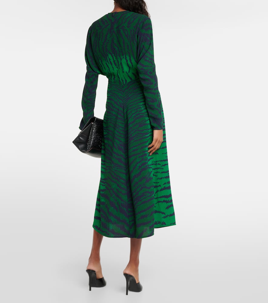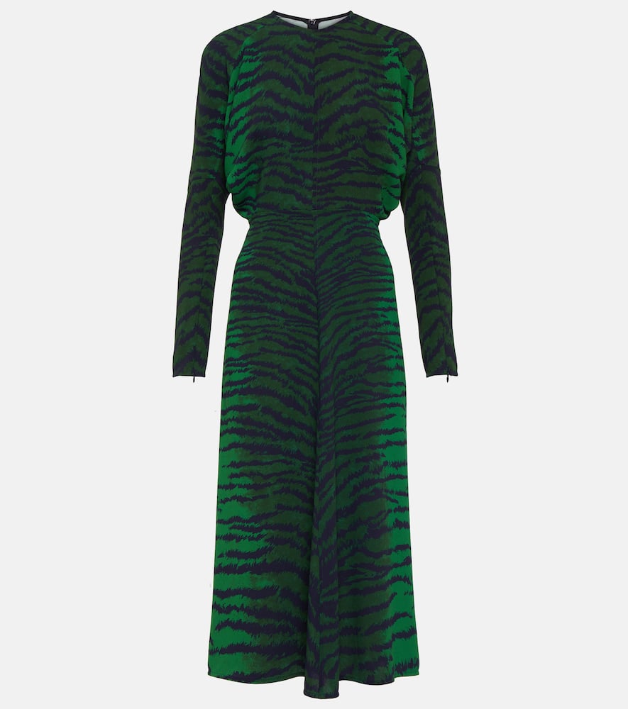 Material: 100% polyester. Care instructions: dry clean. Made in Lithuania. Designer color name: Tiger Allover - Green/Navy . Closure: zipped back. Shop the latest Victoria Beckham Midi Dresses for women.