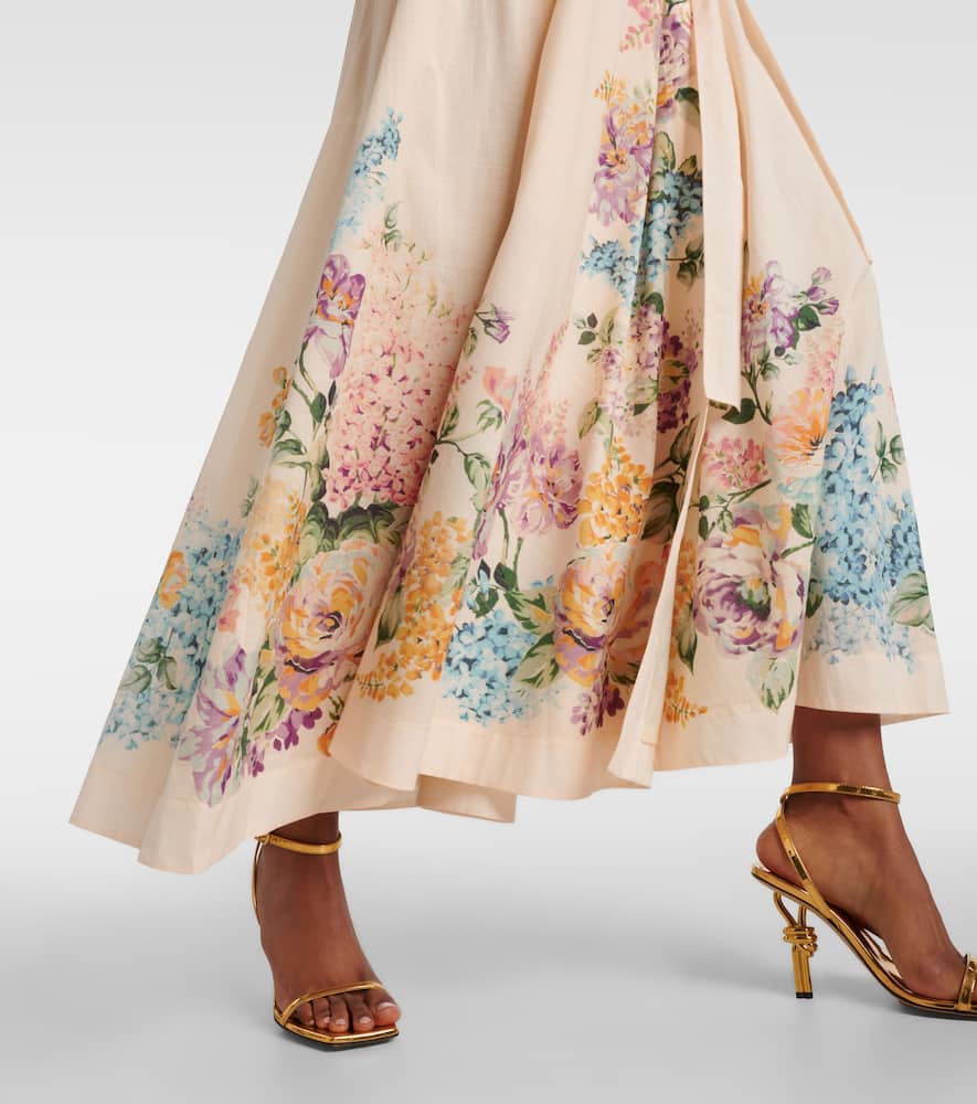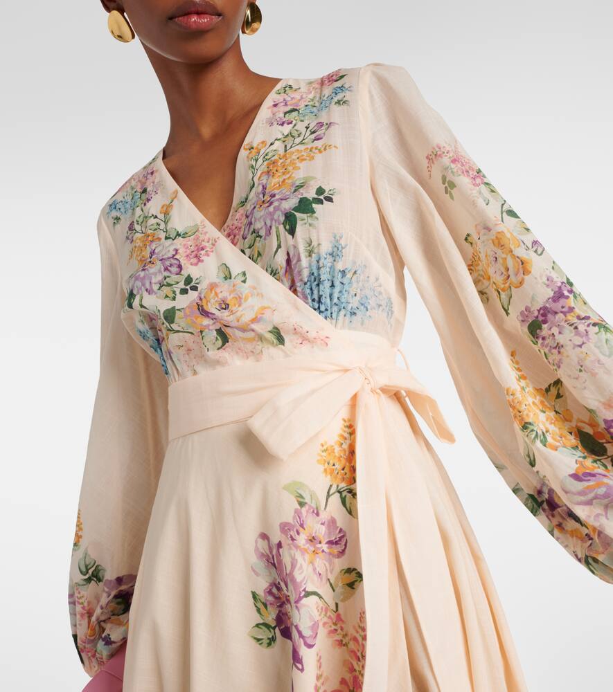 Material: 100% cotton. Care instructions: dry clean. Made in Portugal. Designer color name: Cream Watercolour Floral. Lining: 100% cotton. Closure: self-ties. Shop the latest Zimmermann Midi Dresses for women.