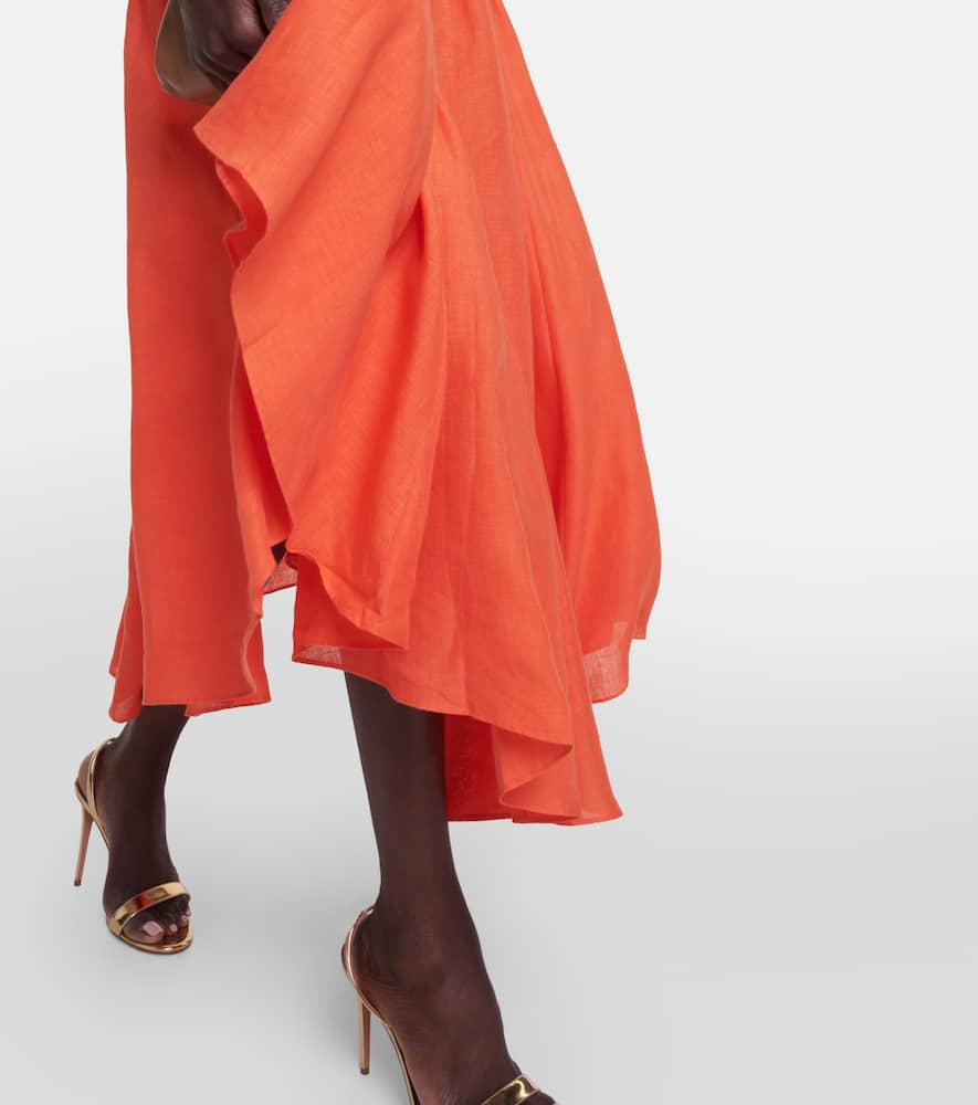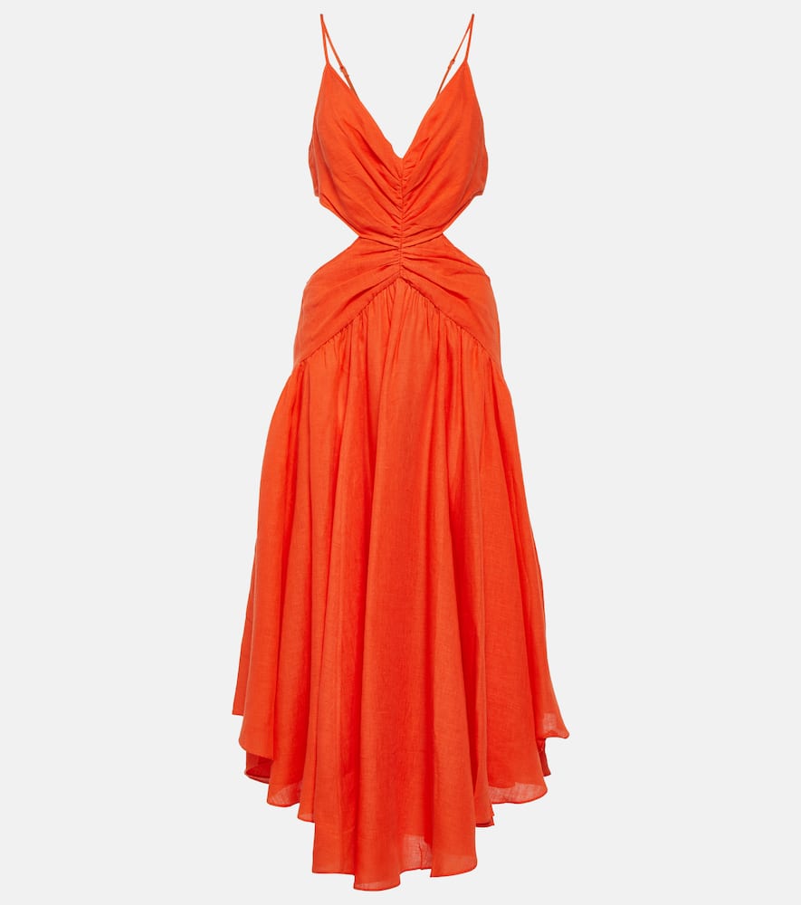 Material: 100% linen. Care instructions: dry clean. Made in Portugal. Designer color name: Tangerine. Color: orange. Shop the latest Zimmermann Midi Dresses for women.