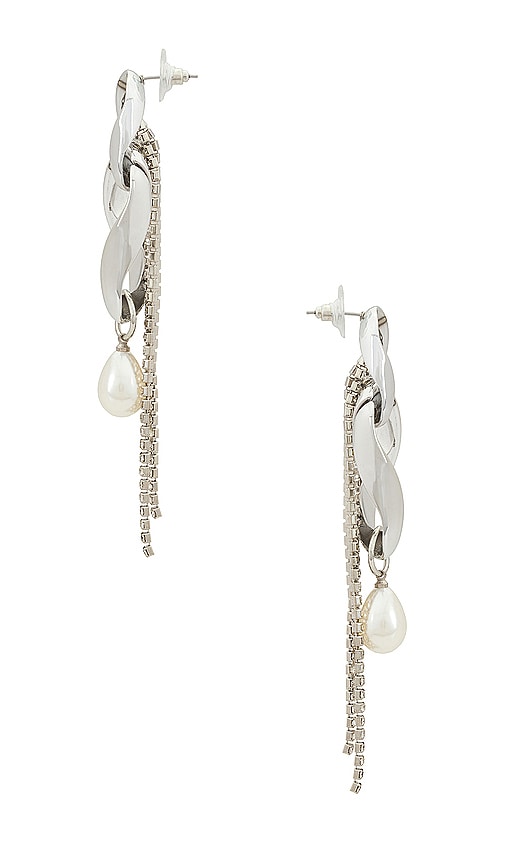 Amber Sceats Layered Earrings in Metallic Silver. Amber Sceats Layered Earrings in Metallic Silver. Silver-tone metal with clear crystal fringe and faux pearl. Made in China. Post-back closure. Measures approx 3.5 dangling. AMBE-WL485. ASE2593S. Heavily influenced by their appreciation for art, travel and architecture; Amber Sceats is an ode to the abstract. The quality and versatility of their collections is testament to their familys vast experience in design and production. There is a distinct sense of style, glamour and individuality to Amber Sceats jewelry. The underlying rock element to the collection makes the pieces uncompromisingly contemporary whilst simultaneously timeless. Since the inception of the brand, Amber Sceats has clearly assembled a cult following for her designs; being featured in Vogue, Harpers Bazaar, Elle, Grazia and on Australias most influential bloggers. Shop the latest in fashion from Amber Sceats